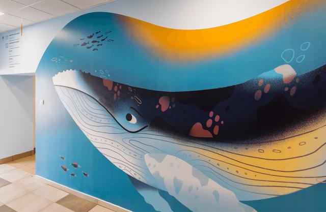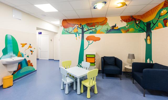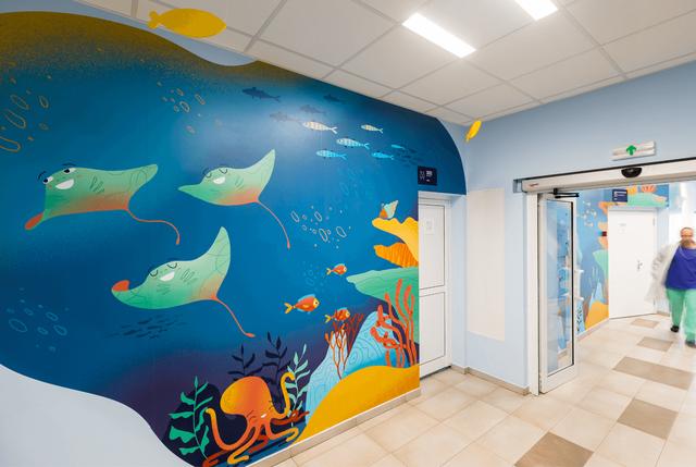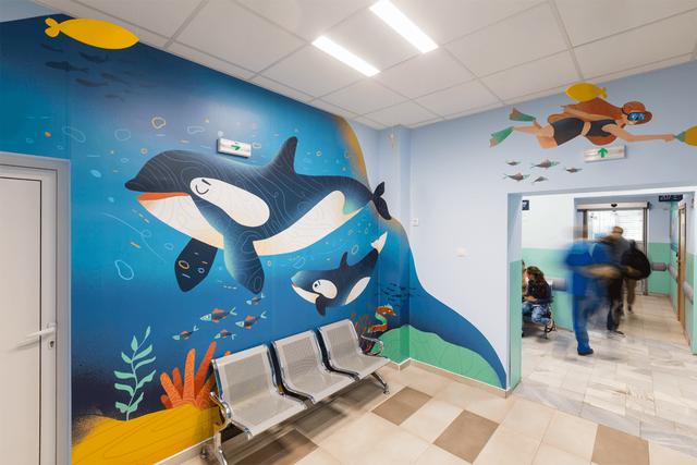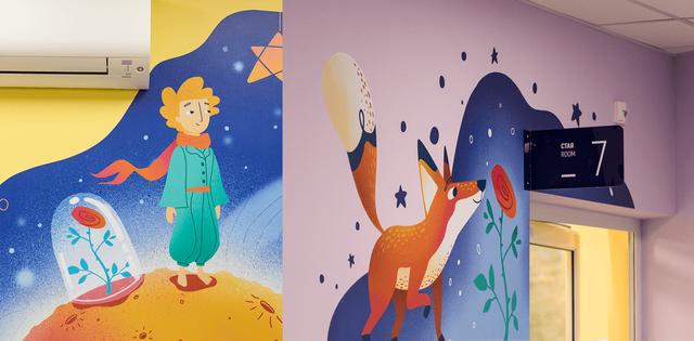 每一面墙都有丰富多彩的插图,设有简单的导航信息,让环境成为小朋友们的焦点,不再让人恐惧。