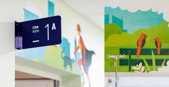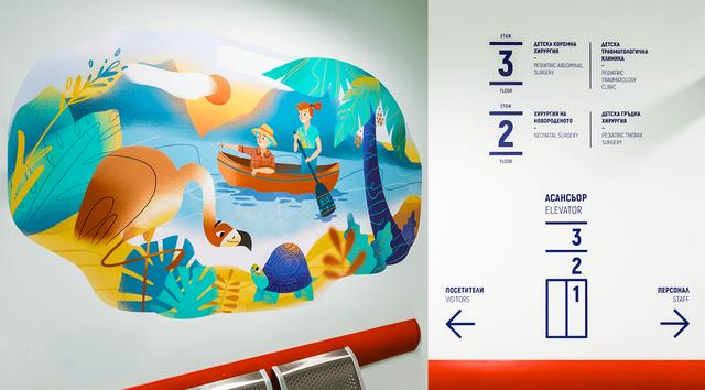 使用手绘插图与导视系统的帮助,让儿童医院给小朋友们一个充满童趣的环境。