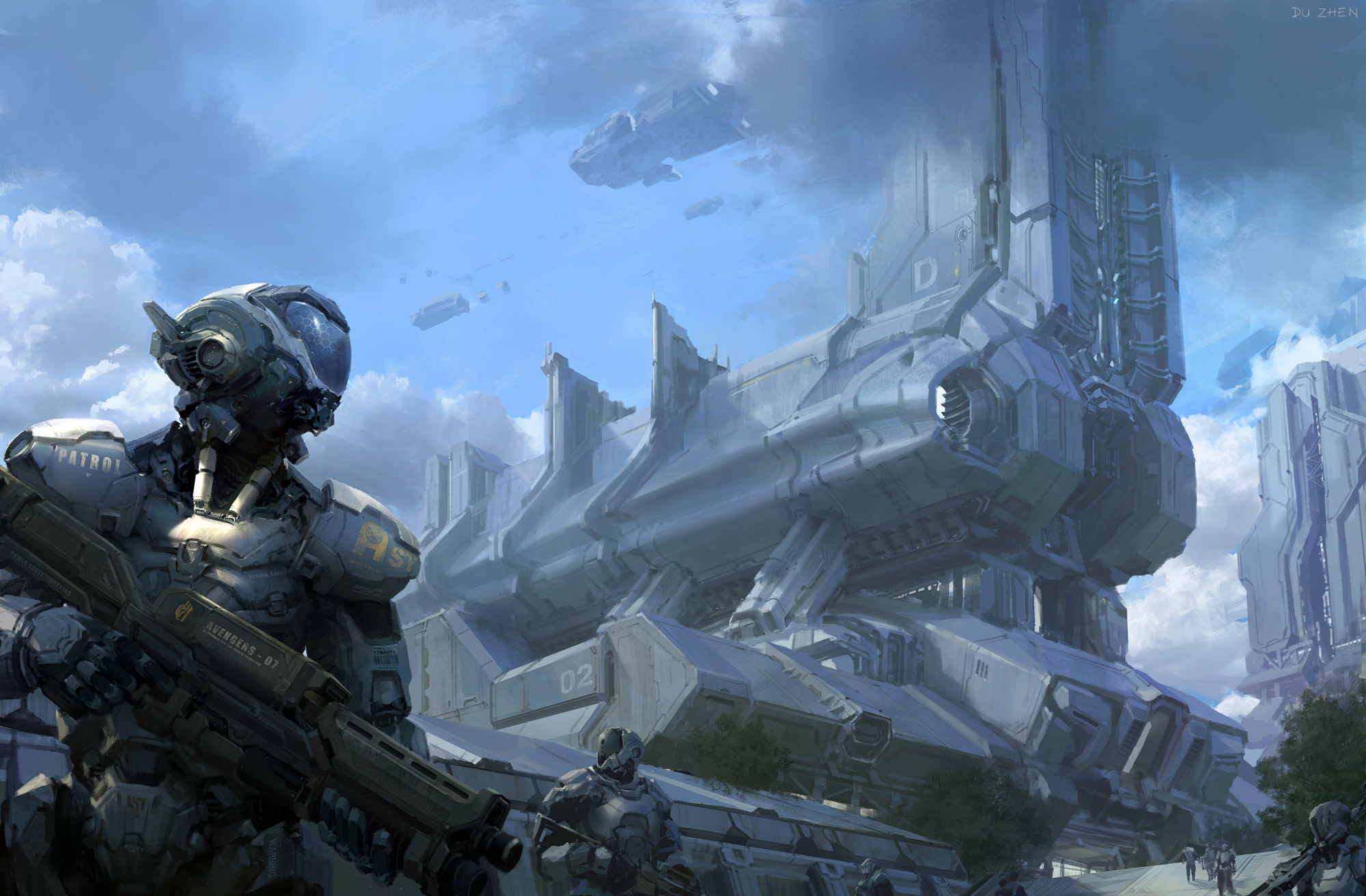 1根据环境色来选择符合当前题材的固有色,再由远往近塑造过渡(背景环境到前景固有的过度),我们可以利用色环或互补、明度的方式来塑造;