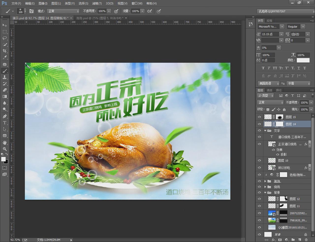 5.接下来把烧鸡导入进来,调整合适的位置,把背景去掉,进行处理。
