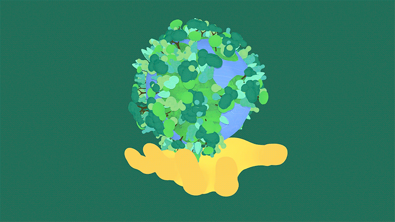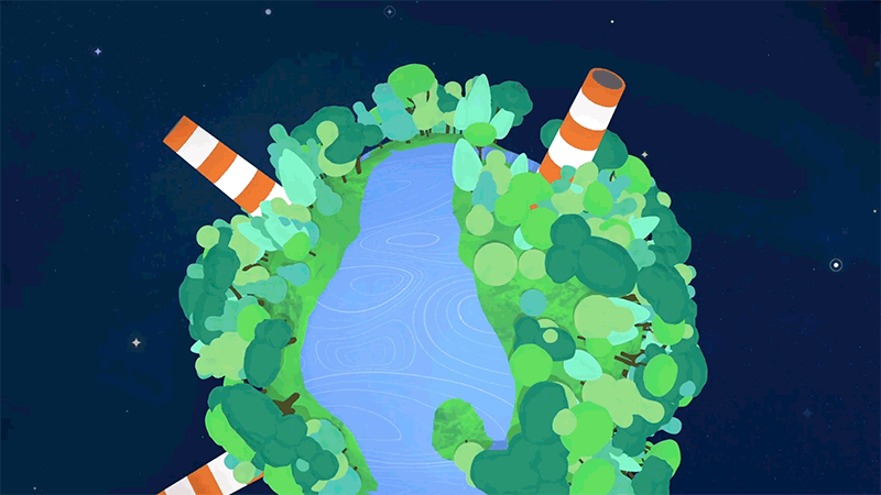 正如你所看到的,设计师选择平面设计插图,有助于保持趣味元素和全球变暖的严肃话题之间的平衡。明亮的调色板设置视频的愉快心情,展示应用如何让世界变得更美好。