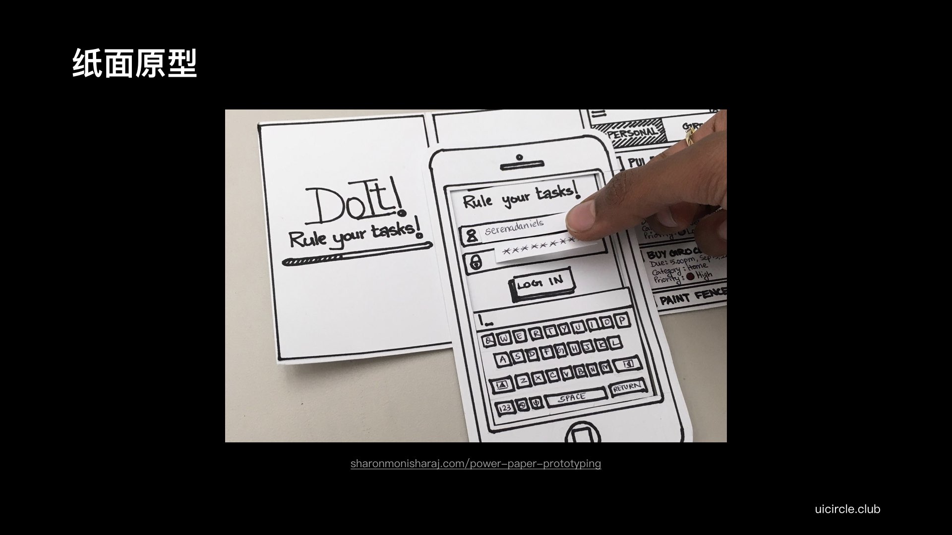 Paper Prototype(纸面原型):将页面画在一张张纸上用作演示。