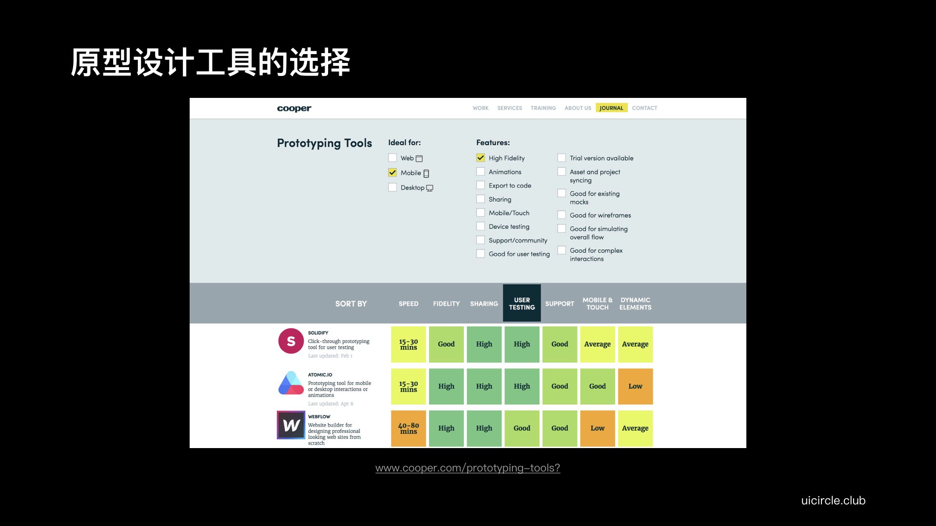 设计咨询公司 Cooper 做了一个非常有意思的原型设计工具筛选器,大家可以上去看看都有哪些软件:www.cooper.com/prototyping-tools?