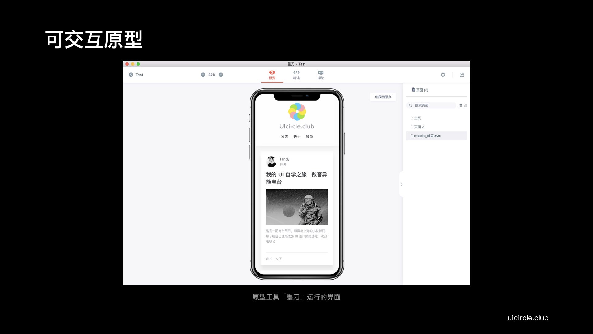 值得提的一点是,我们经常看到的页面细节动效,并非「可交互原型」。它们更多是为了开发某一效果而做的演示。可交互原型更像是一个正常的产品,可供人使用。因此当我们做原型测试时,可交互原型是最好的选择。