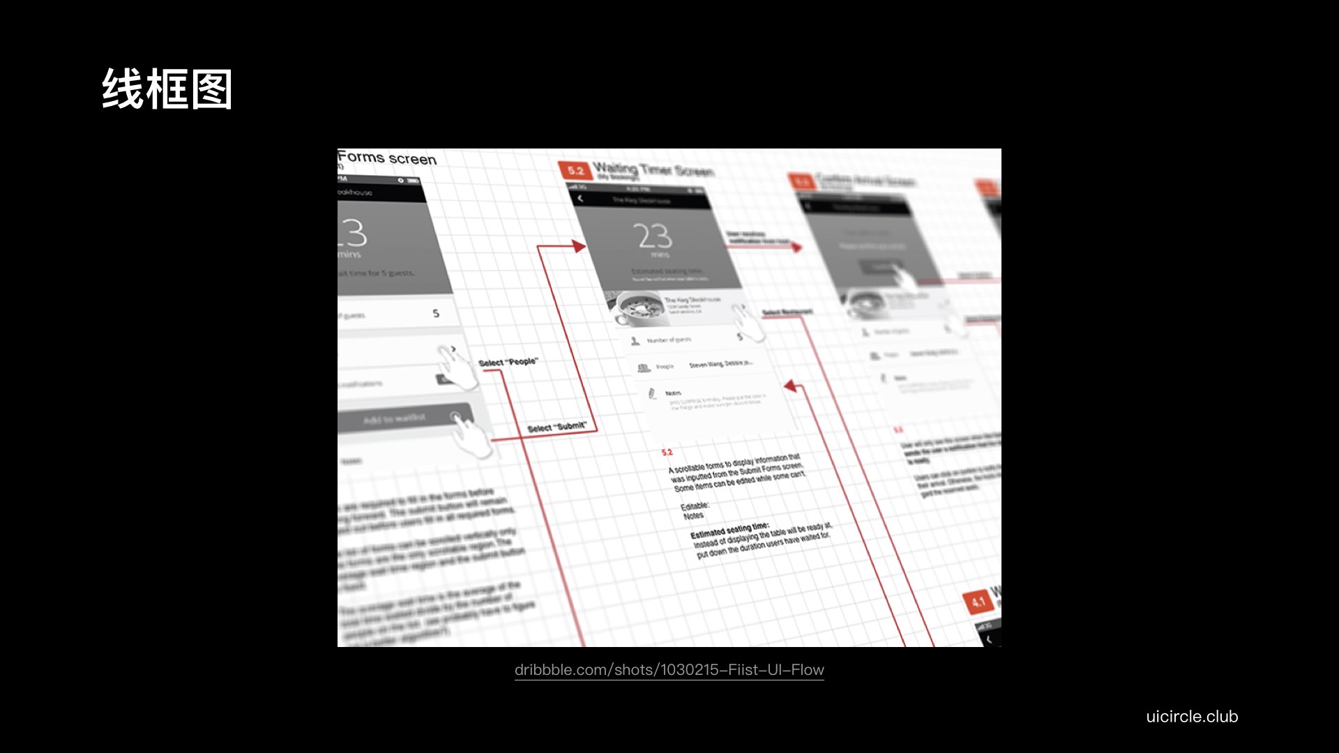 Wireframe(线框图):视觉化呈现一个个独立页面及交互逻辑。