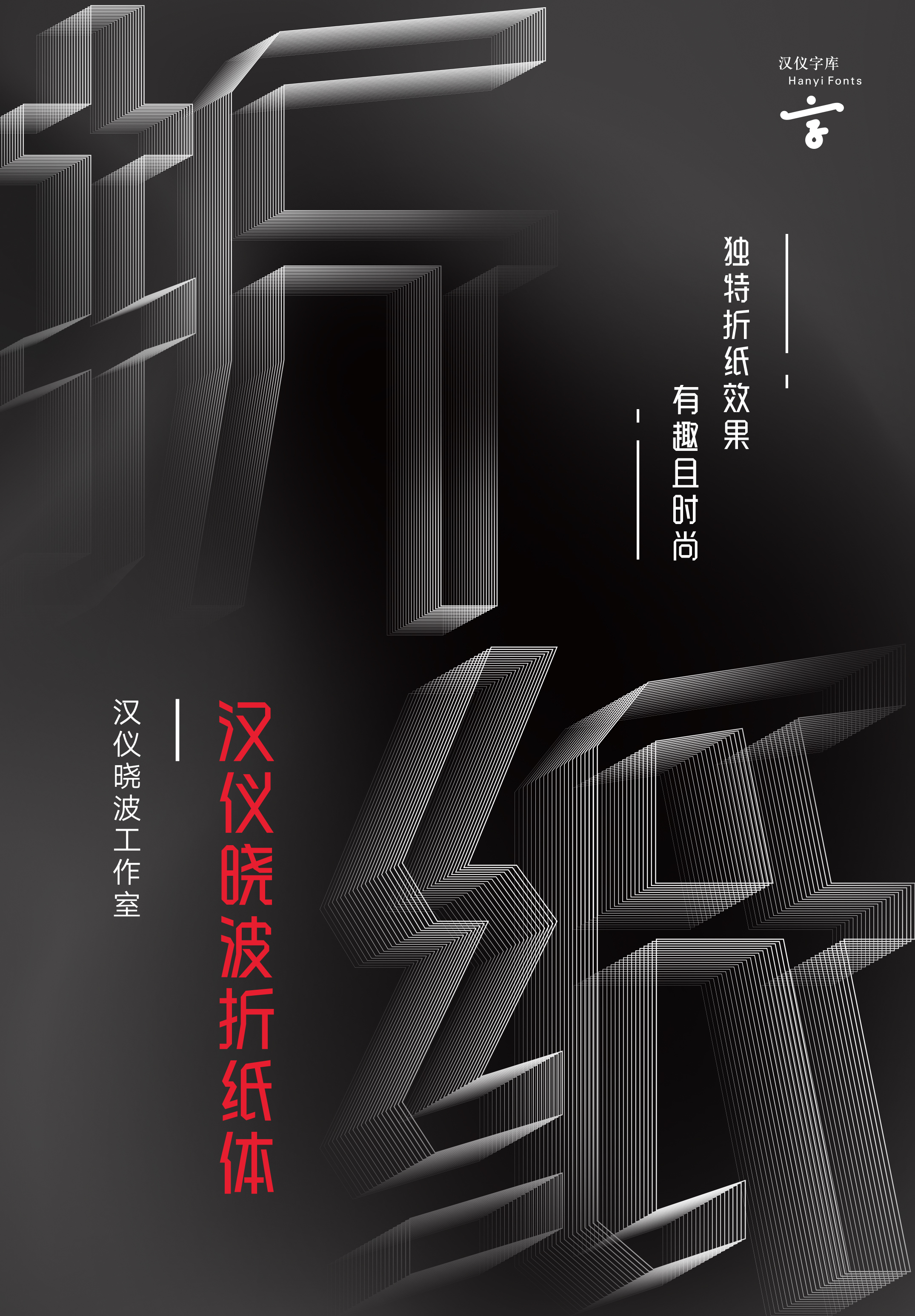 汉仪晓波折纸体是一款字形瘦高的字体,每个笔画都处理成了纸张折叠的效果,因此具有很强的趣味性和设计感,又兼具现代感,是一款品质优良的美术字形。