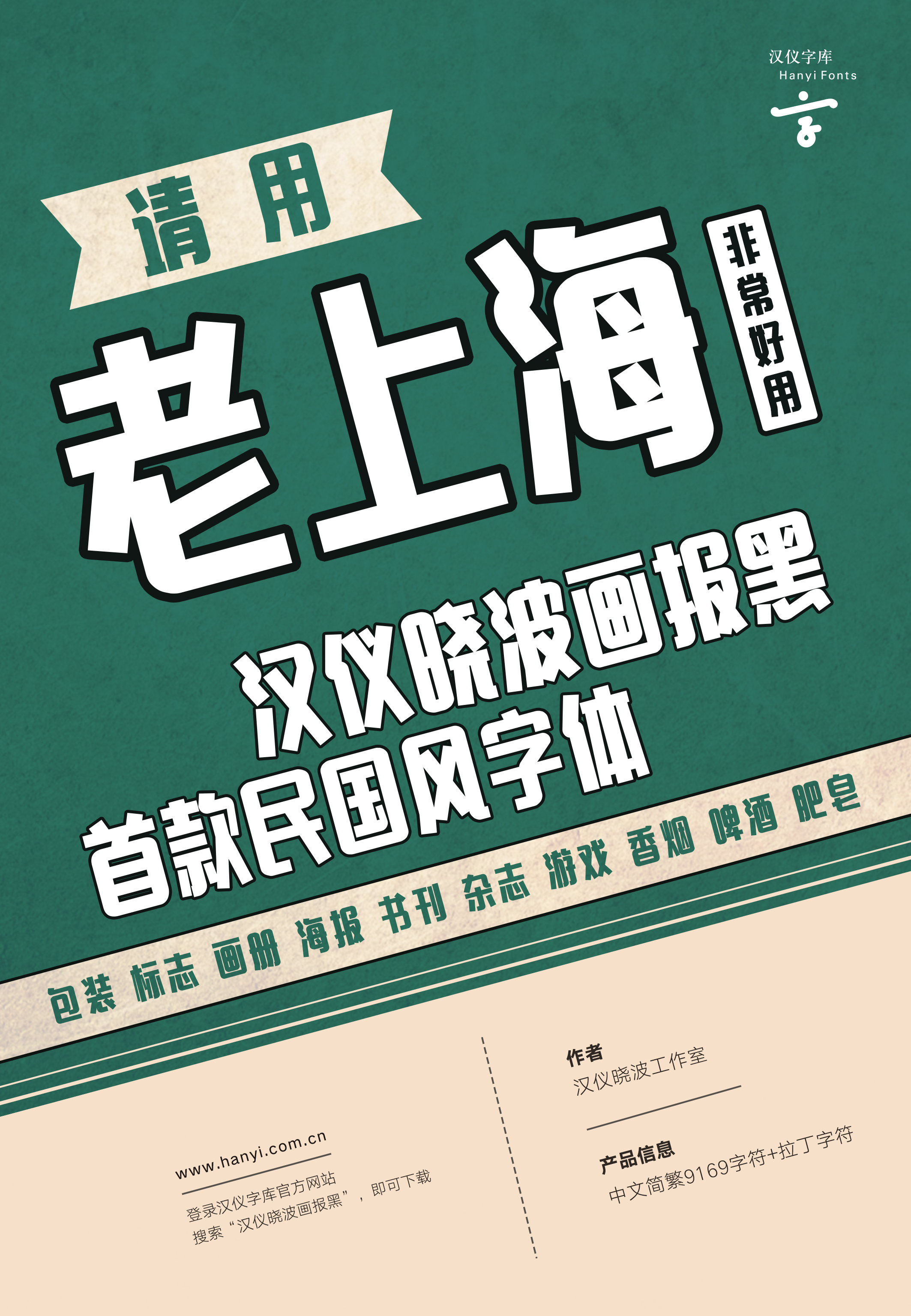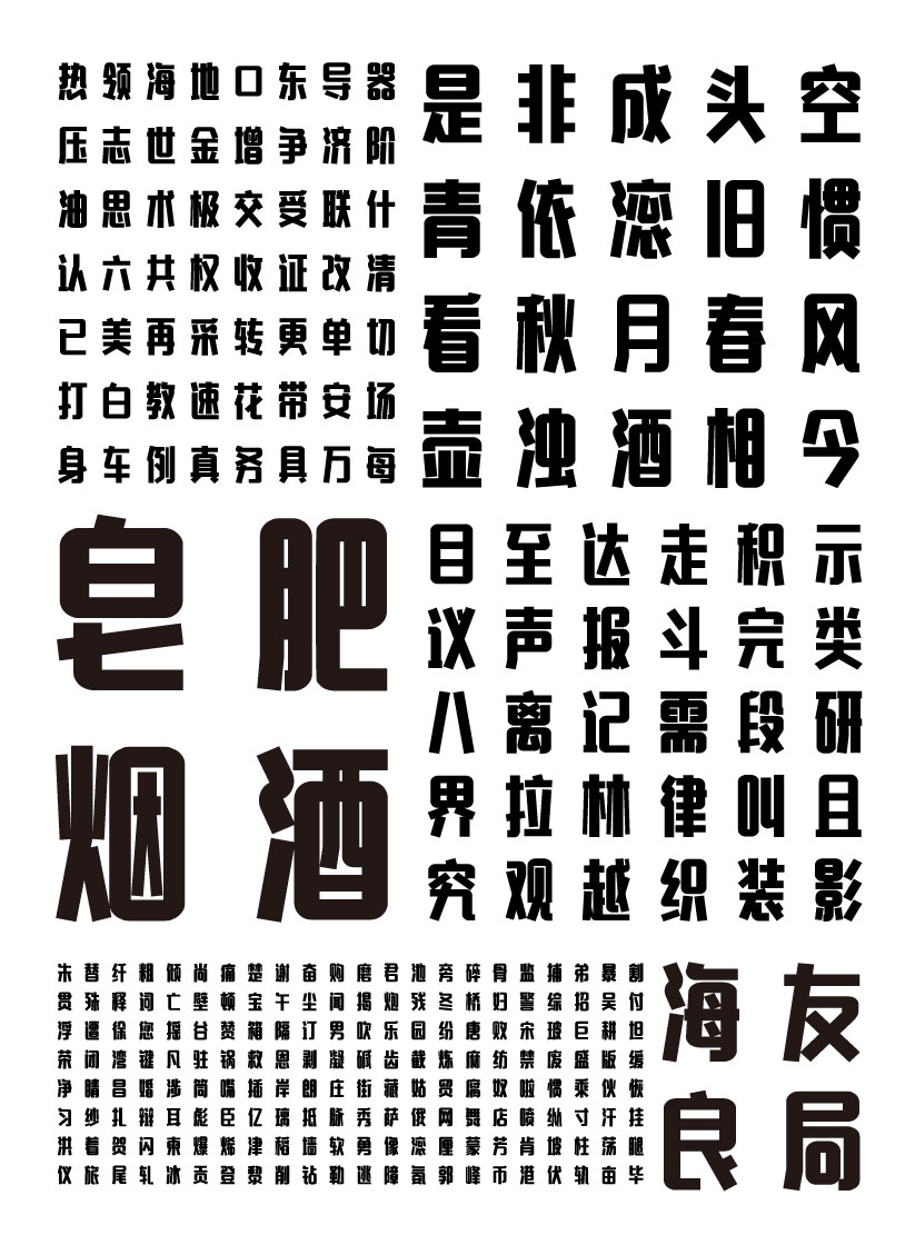 汉仪晓波画报黑是一款有着民国美术字气息的字体,笔画干脆利落,毫不拖泥带水,整体结构高挑挺拔,隐有壮士风骨,又具人文情怀。