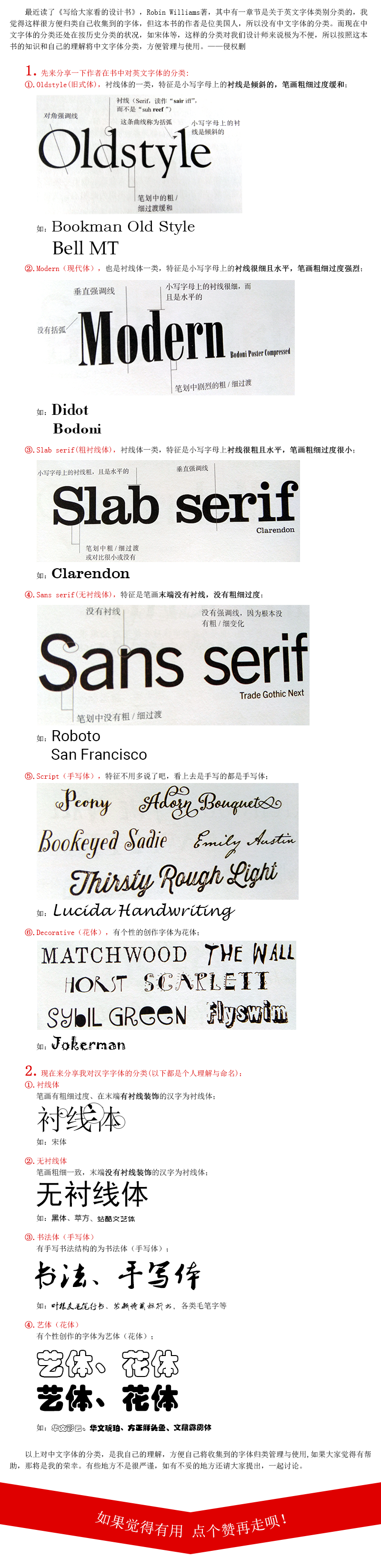 读了《写给大家看的设计书》,有一章节是关于英文字体类别分类。按照这本书的知识和自己的理解将中文字体分类,方便管理与使用。