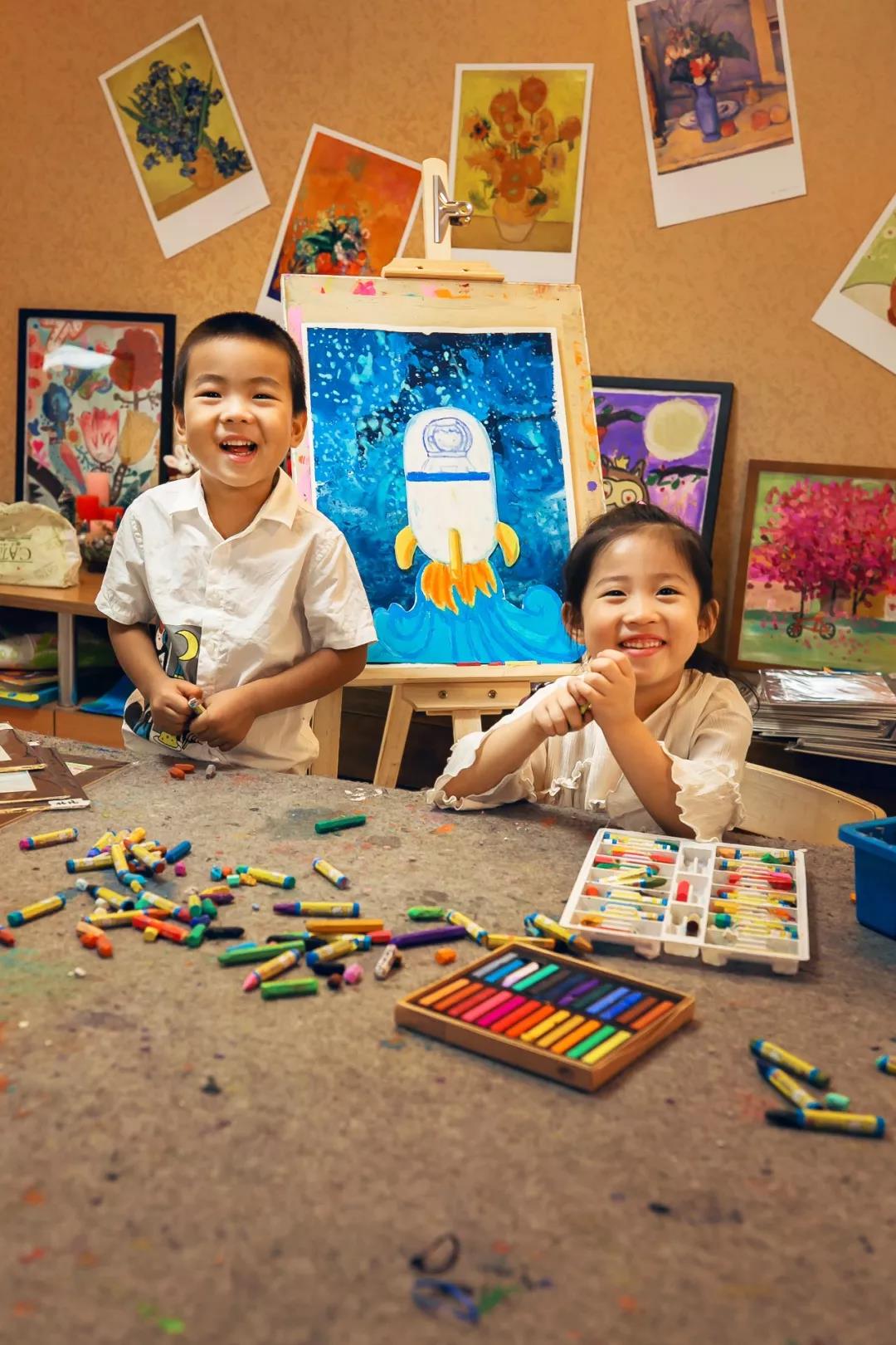 是不是很惊艳?你能猜到嘛,这些画作的创作者不是大师,也不是专门的画师,而是来自少儿美术培训机构——“山谷里”的可爱孩子们。