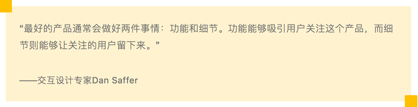 作者通过上面的这些例子为我们讲解了基本的微交互和好的微交互之间的差别,虽然这些微交互形式看上去都“差不多”,但是当用户在实际使用的时候,“感觉”会非常不一样,就好比你脚上的鞋子,可能鞋跟的弧度只差了几毫米,就能让你觉得格外舒服,或者格外不舒服。