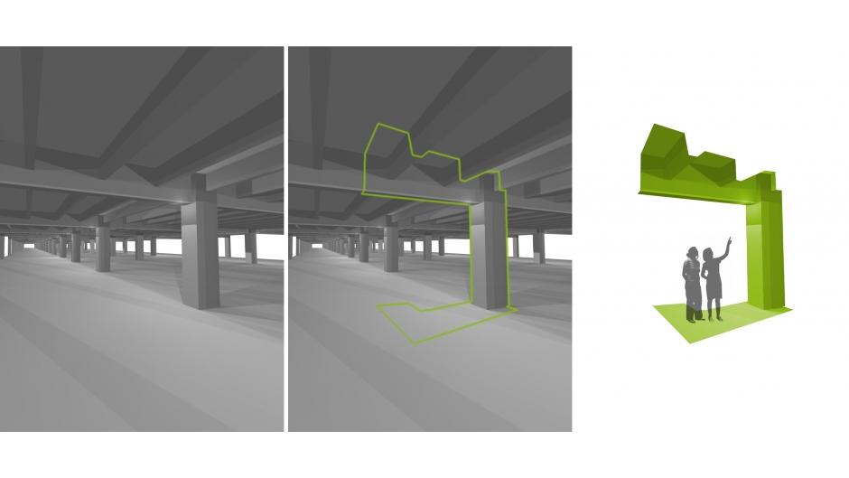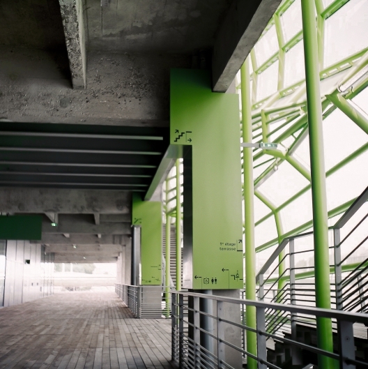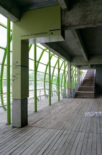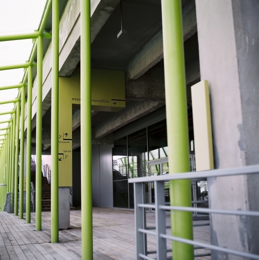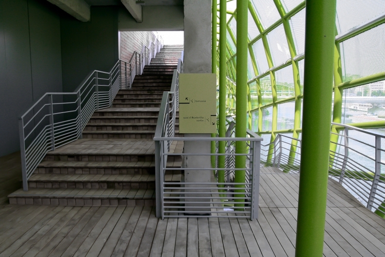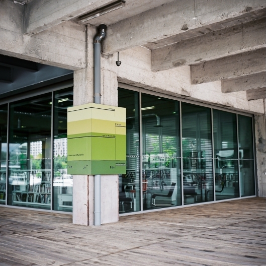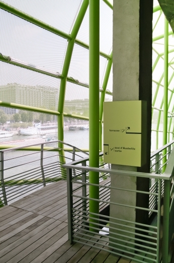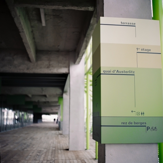 导视系统计划由Nicolas Vrignaud开发。Vrignaud认为建筑物本身就是一个标志,它参与了巴黎十三区的城市更新,并成为塞纳河沿岸的一个瞬间,一个游标。导视系统的概念是建立在顺序观念和散步的基础上进行设计,使用围绕混凝土结构的铝制面板提高人们对空间的直观理解,通过色彩与不同的造型的现代结构标志元素为历史背景建筑增添个性。