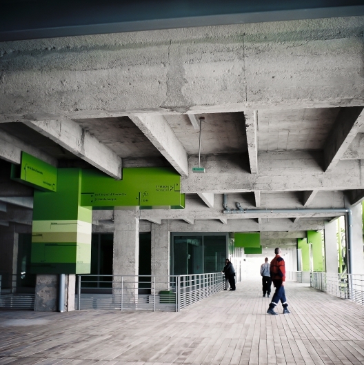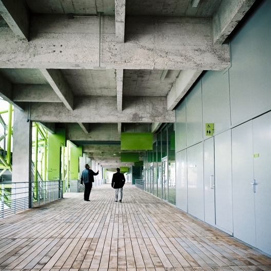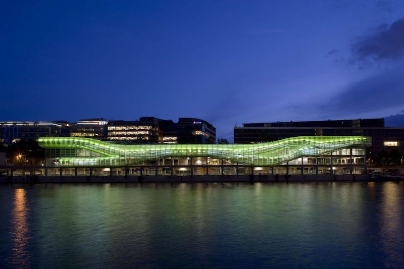 DOCKSen Seine是左岸的一个新时尚和设计重点发展项目,也是巴黎第13区正在进行的城市重建工作的一部分。建筑师Jakob + MacFarlane设计了一个绿色金属管道结构,该结构覆盖了现有的1907年的混凝土建筑。长而精致的建筑充当项目的流通环节,连接各种空间,如时装学院、购物中心、展览馆和餐厅。
