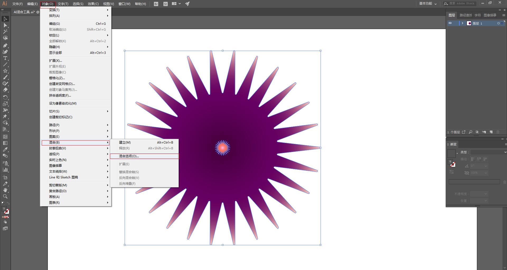 混合工具是AI中一种重要的工具,使用混合工具可以实现颜色及形状的渐变效果,可以创造出许多绚丽的色彩和图形。