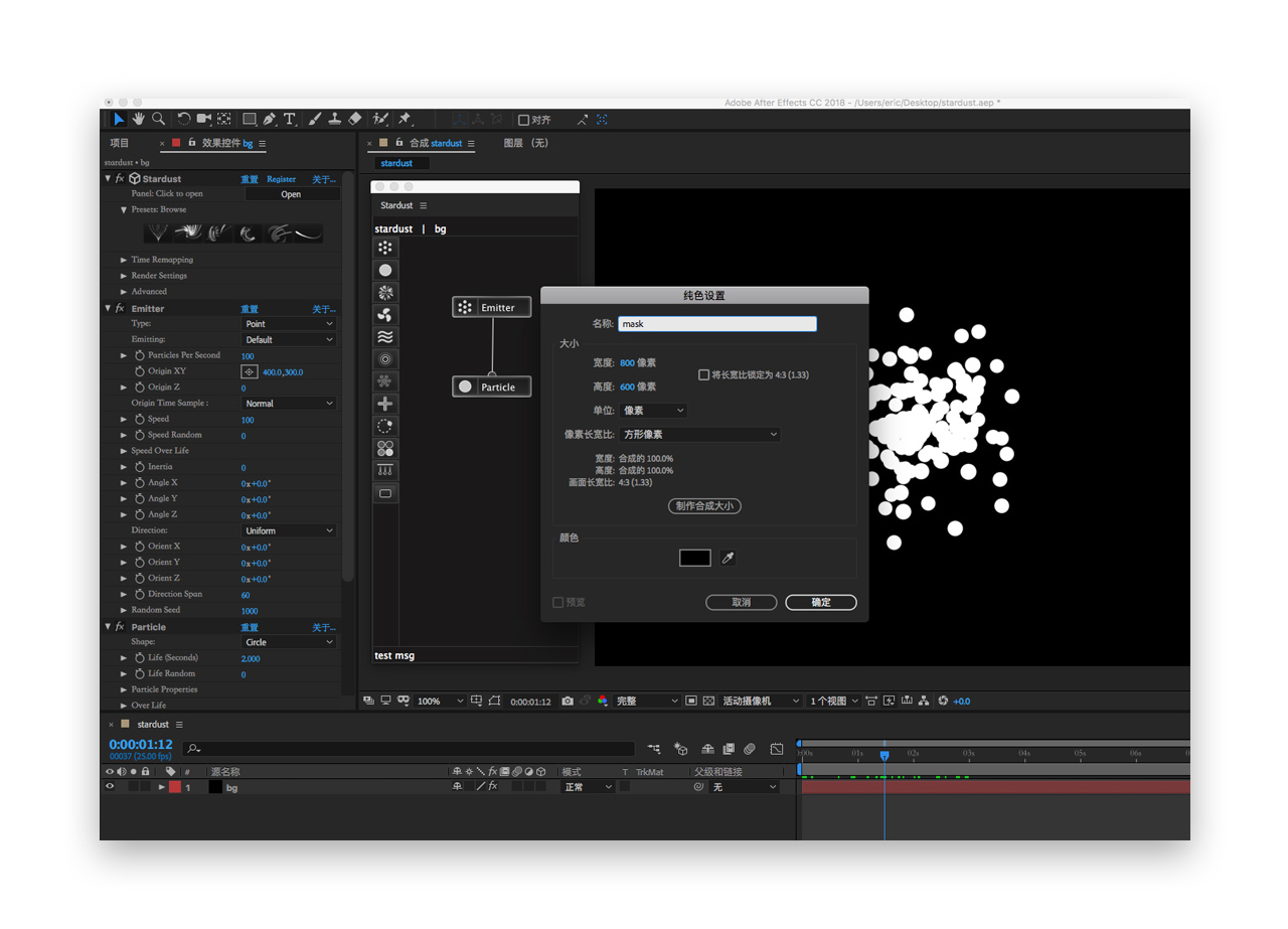 二. 新建固态纯色层,命名为bg(养成随时做好图层的命名的习惯),之后会在bg图层上添加星尘粒子效果