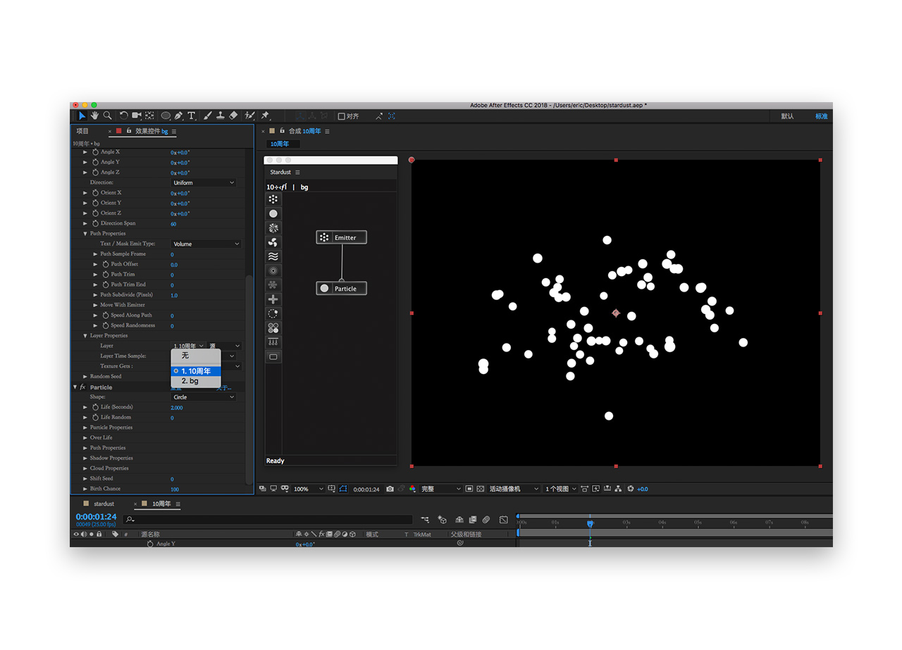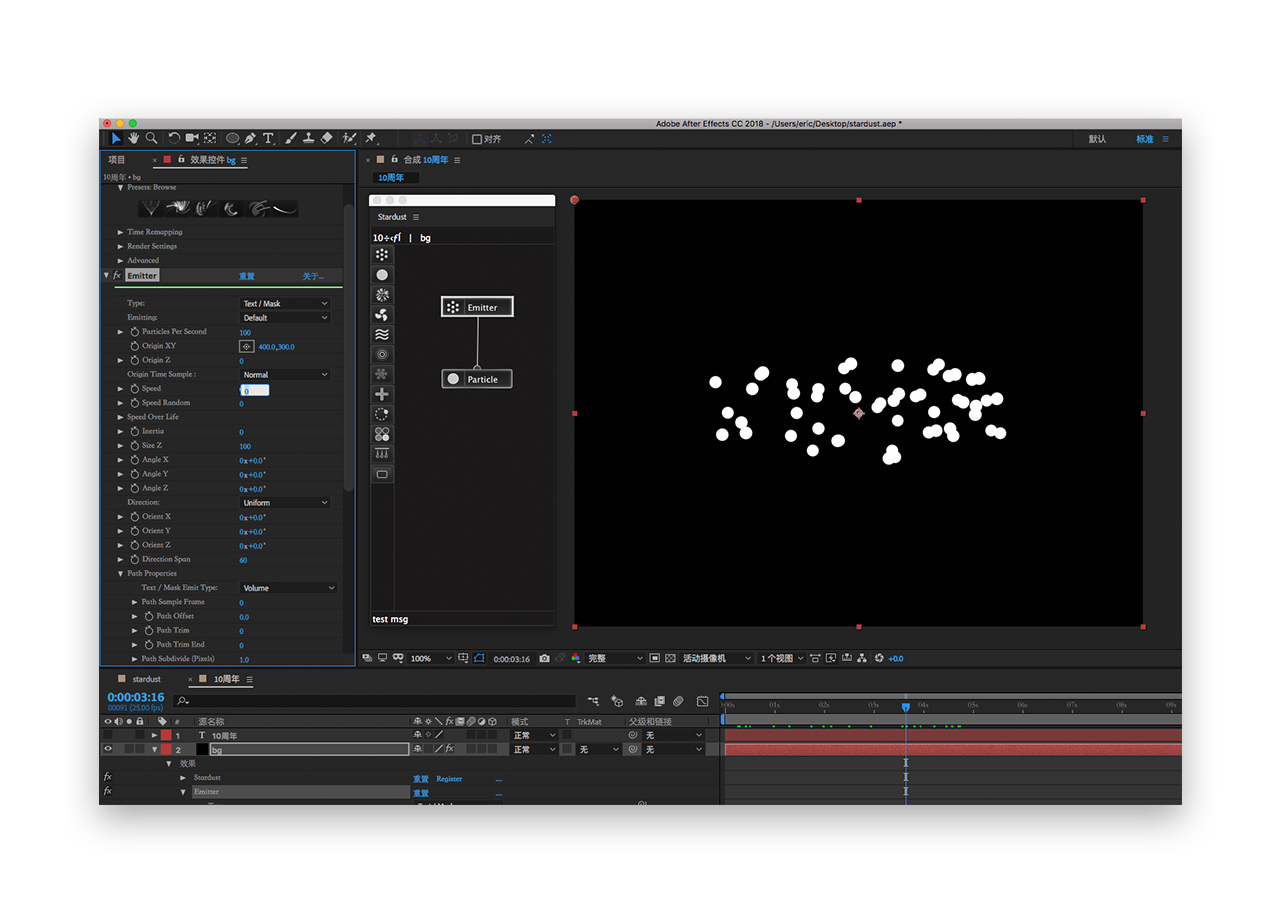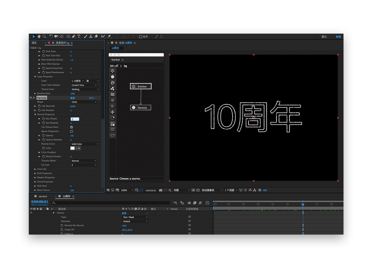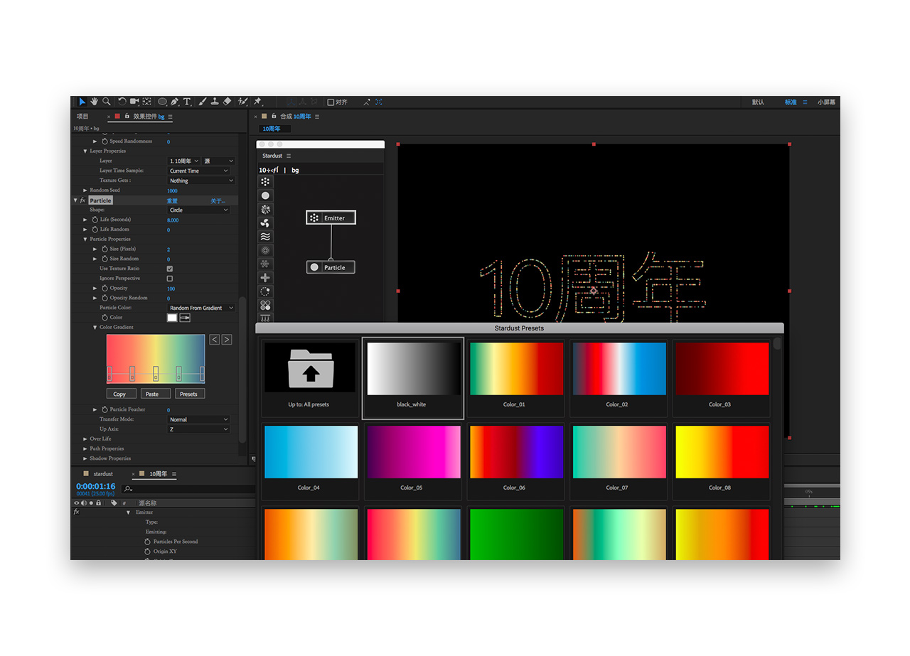 三十五.最后就完成啦,回到stardust合成,将10周年合成拖到他上面完成组合