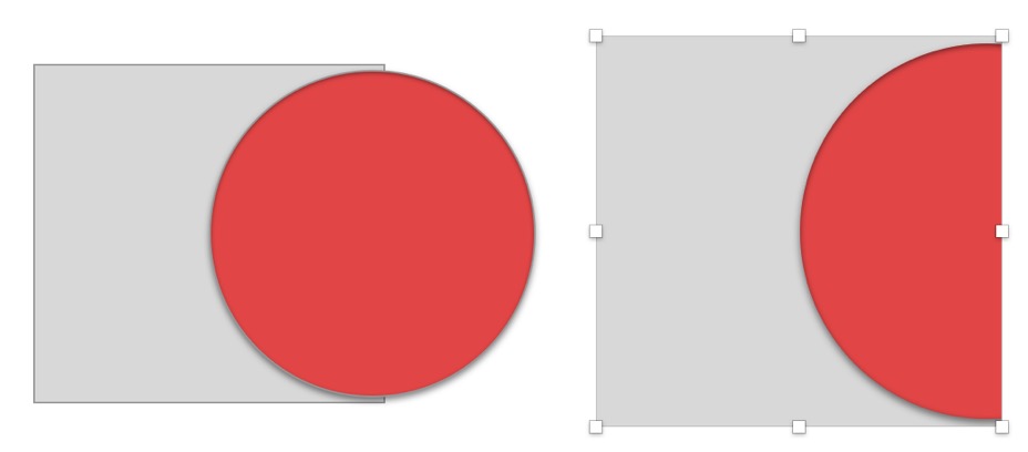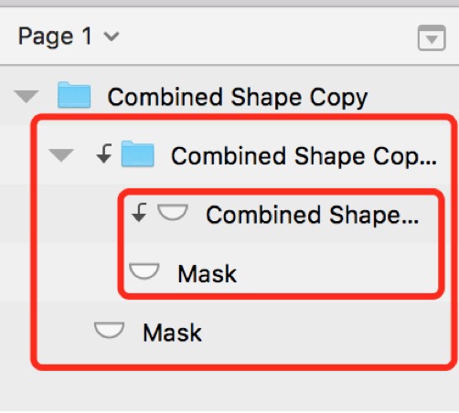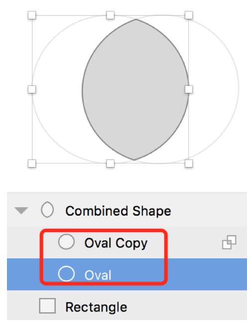 选中画面中的两个形状,注意上下两个形状的图层顺序,上面的形状是被蒙版的,下面的是蒙版区域。