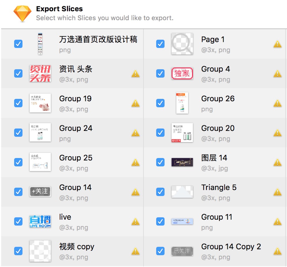 比如我们给一组元素的切片前缀都命名为icon/ 比如下面这组元素的命名