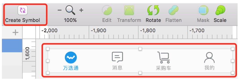 比如我们将标签栏的这组元素设置为复用符号,进行如下操作,选中这组元素,点击工具栏中的creat symbol命令,命名