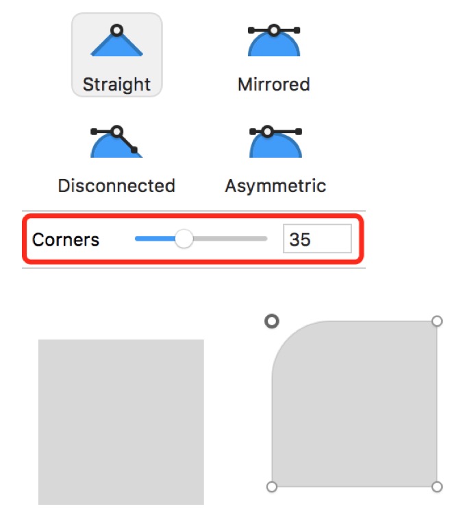 选中已经调整为圆角的角,执行layer—path—Reverse order即完成了对圆角的固化,固化后的角可以以锚点的形式进行调整。