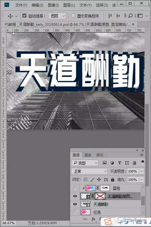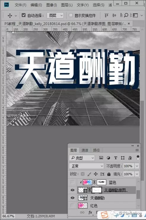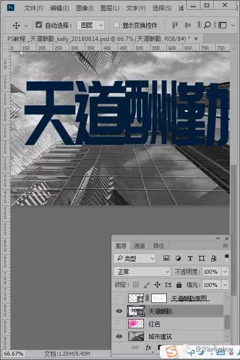 2、完成第一步后我们用文字工具打出“天道酬勤”并右键单击图层选择转换为矢量形状如图所示: