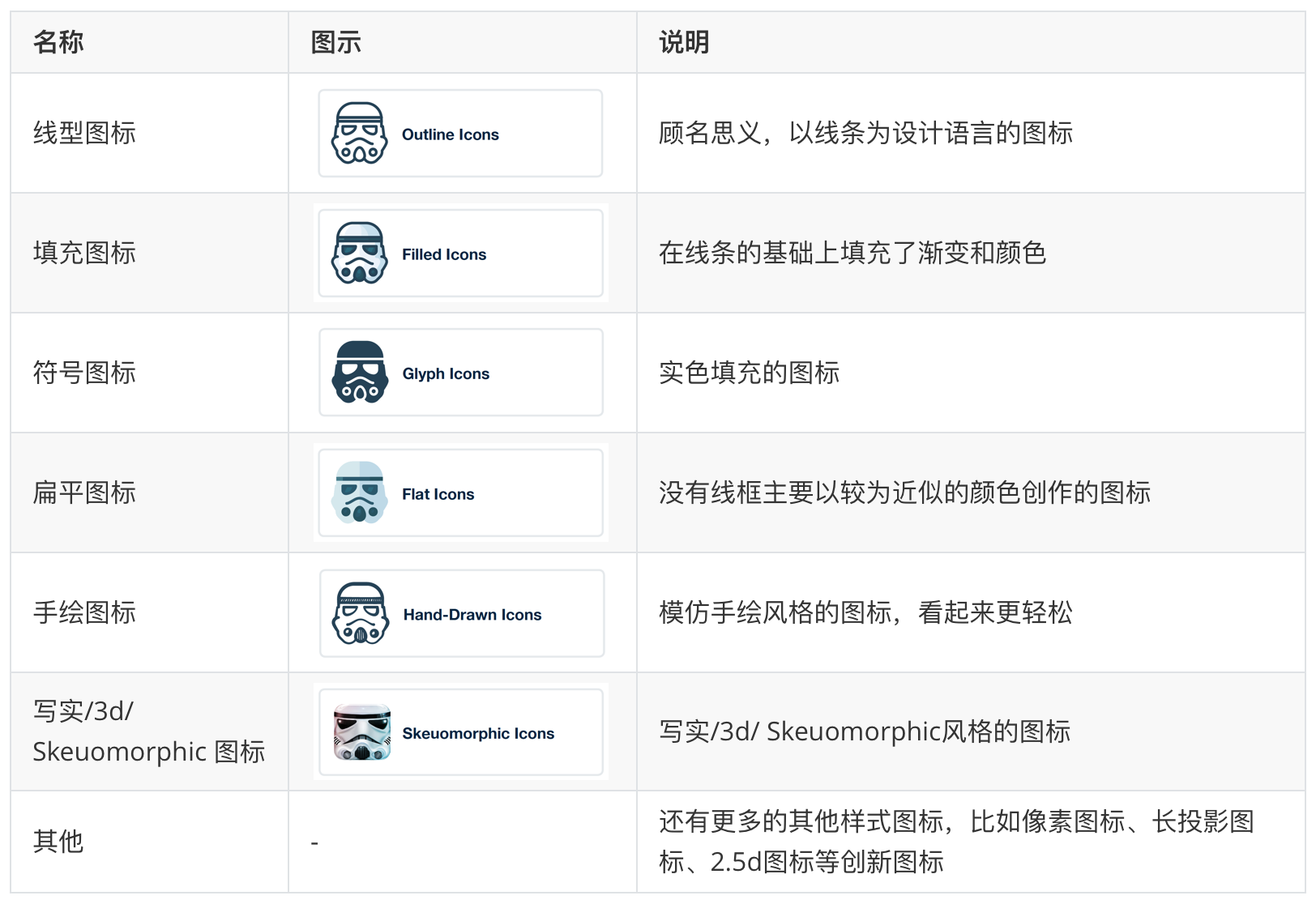 笼统的划分了以下几个类型,其中一些分类并不是平级关系,准确的说应该是icon的标签、属性、或是特征吧。