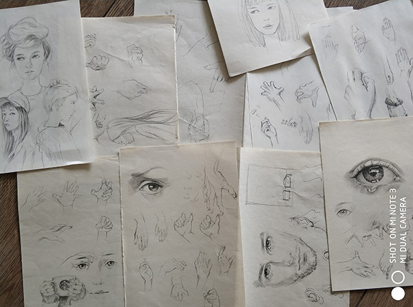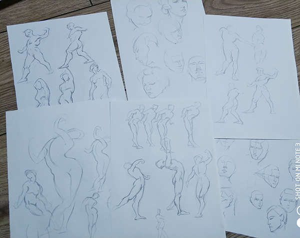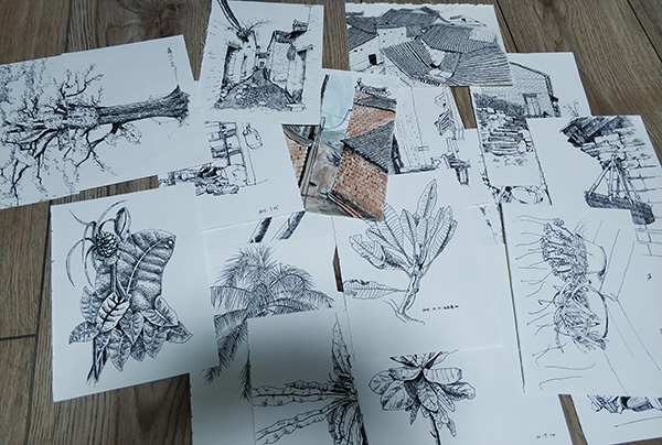 这期间的手绘练习,有临摹,有照着图片或照片,还有外出的速写,保存下来的一小部分相对完整的练习,还有比这多的扔了的练习稿