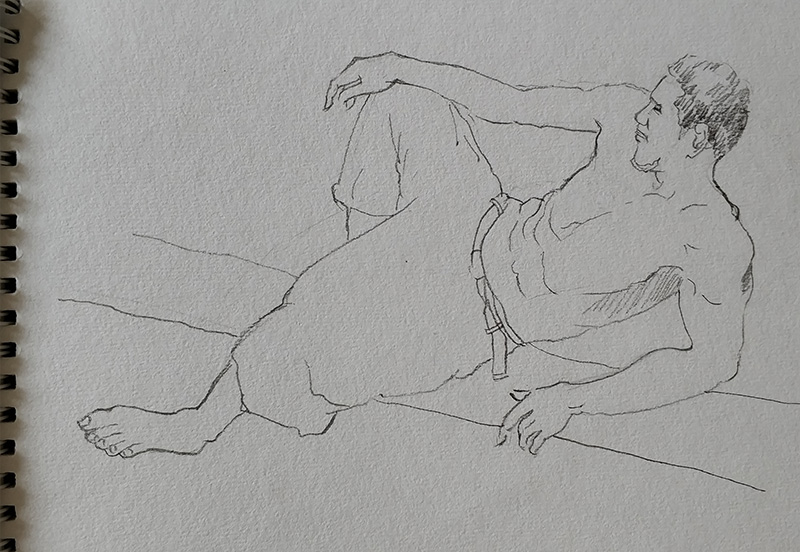 这张是速写本画到一半的时候临摹的一张速写,稍微有些进步了。