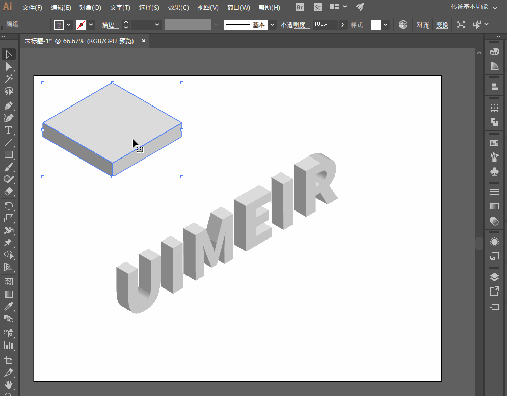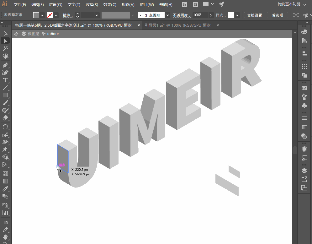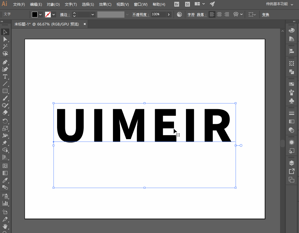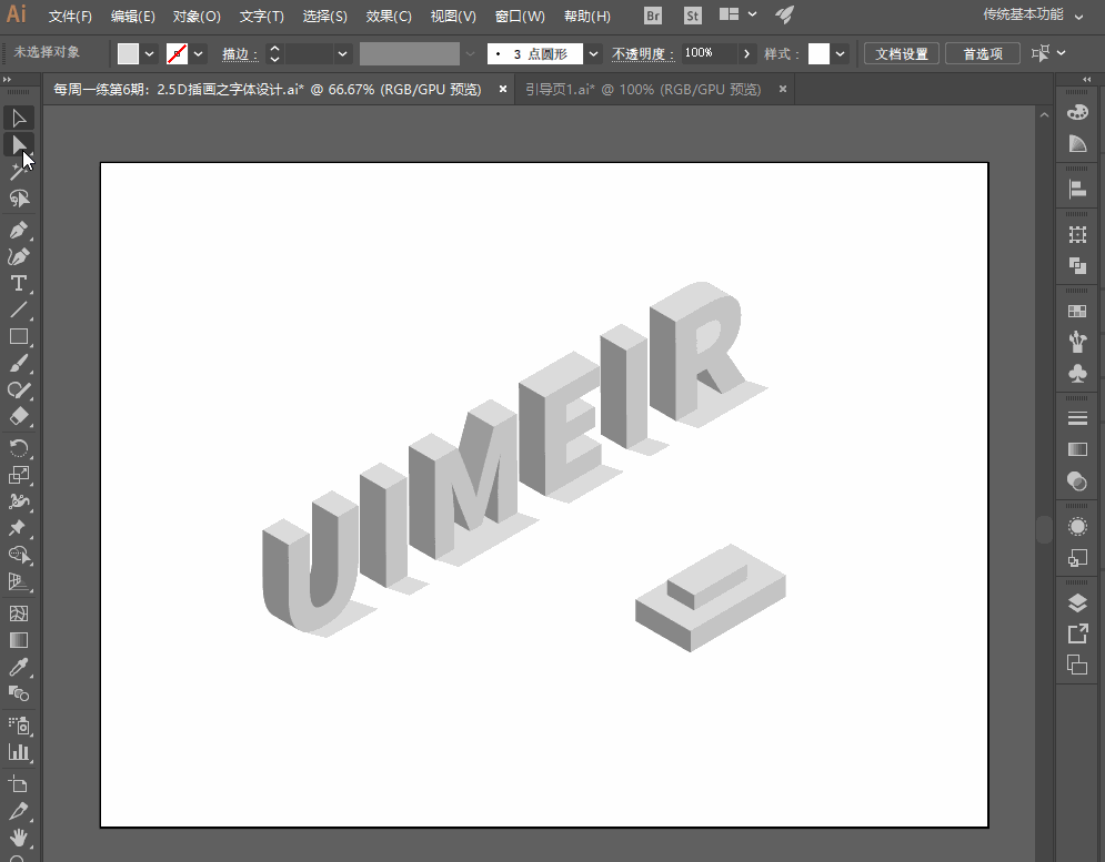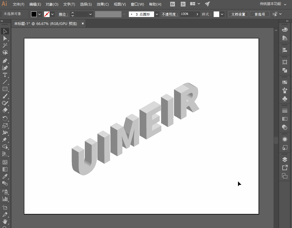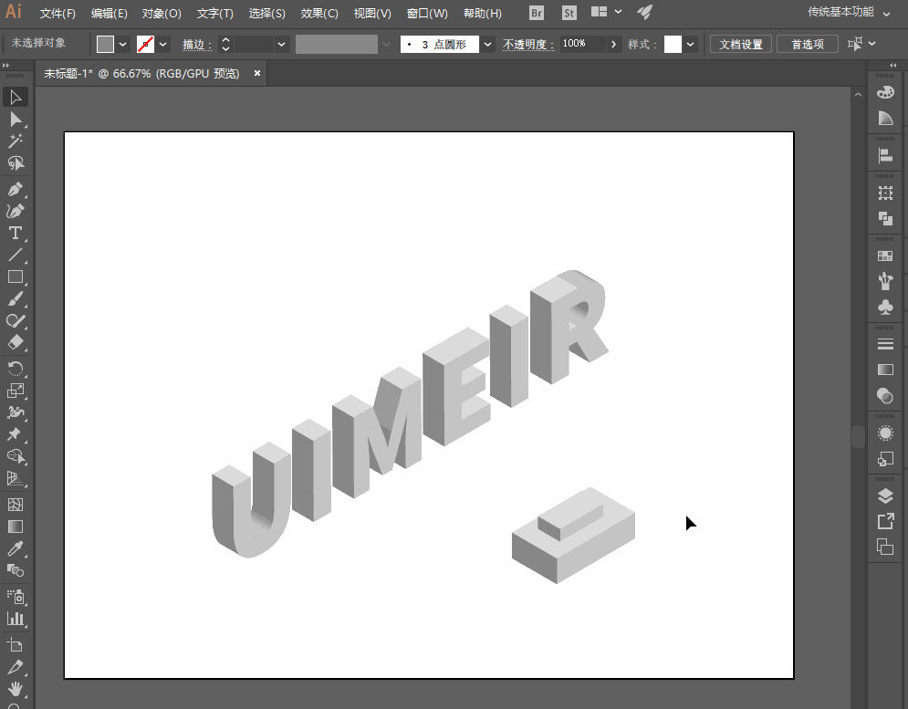 第3步:做文字3D造型,选择文字工具,输入“UIMEIR”,并设置文字属性,动图:(此处文字,你可以用你的名字或者品牌名称都可以)