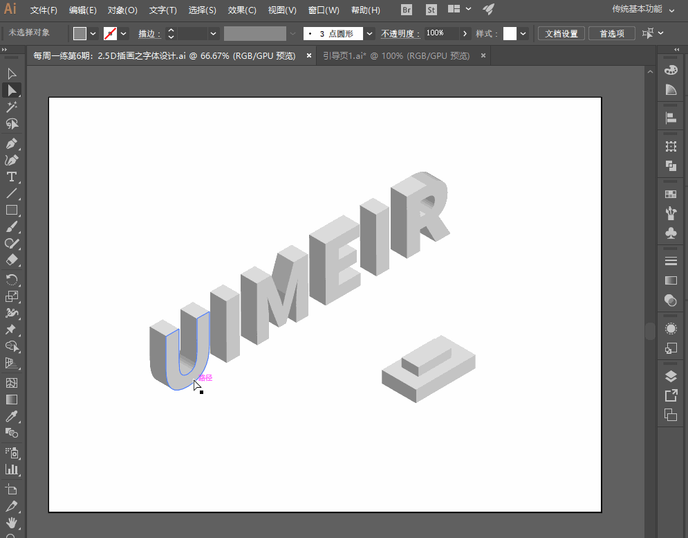 第8步:上色前的准备,将字母文字造型中的曲面位置的面选中,然后点击:窗口—路径查找器—联集,目的是为了我们方便上色,如动图: