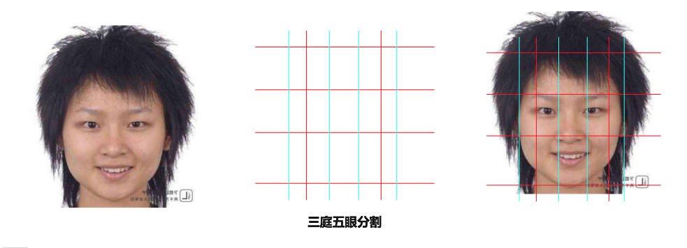 1.三庭五眼长久来作为脸部标准,我们拿它作为脸部网格,在人物模型脸上搭建标准分割线,用来观察两部变化