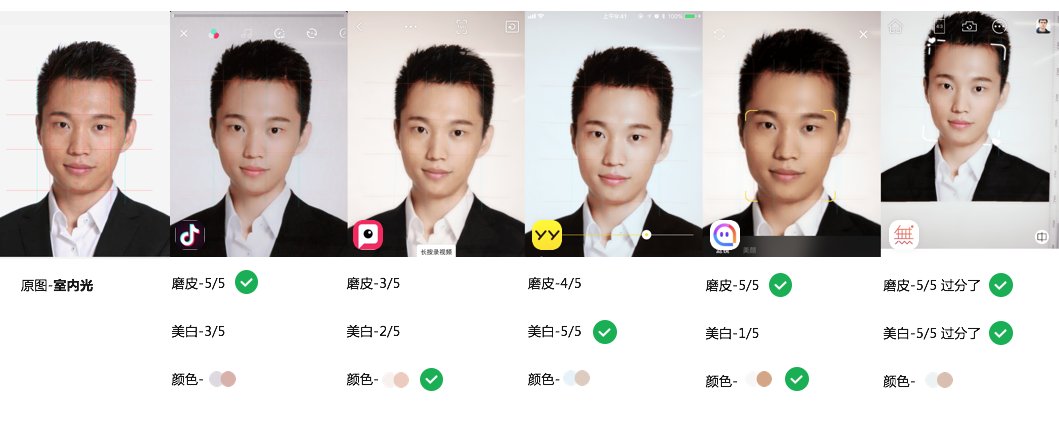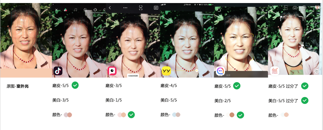 1.通过对 某陌、某音、某Y、某他相机、某天P图的效果对比分析