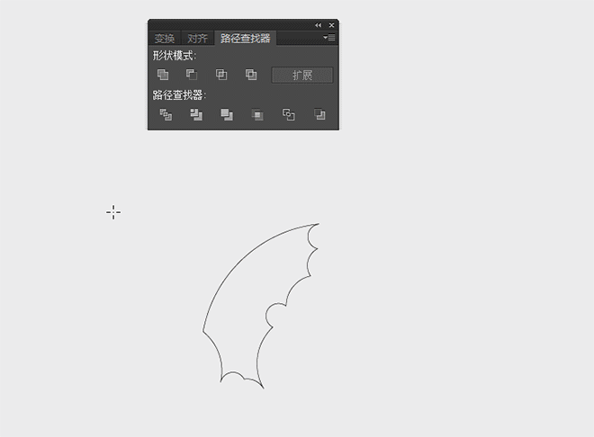 放好圆圆圈圈后,我们将边转化为面,路径-轮廓化描边,打开路径查找器,分割,取消编组后删除多余部分,先制作出蝴蝶一半翅膀