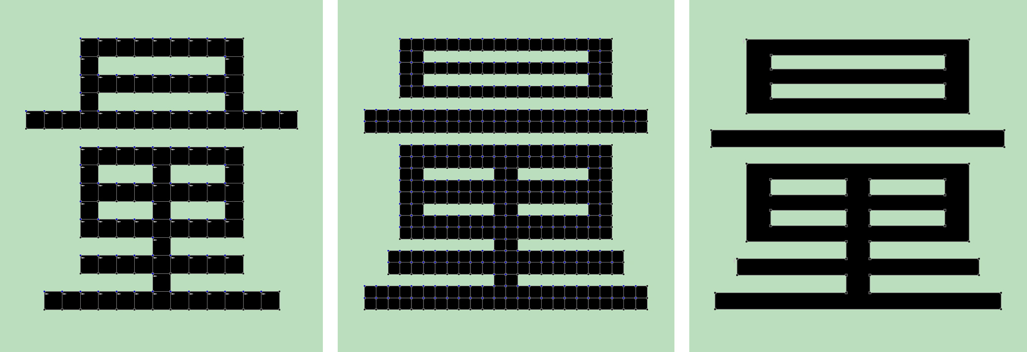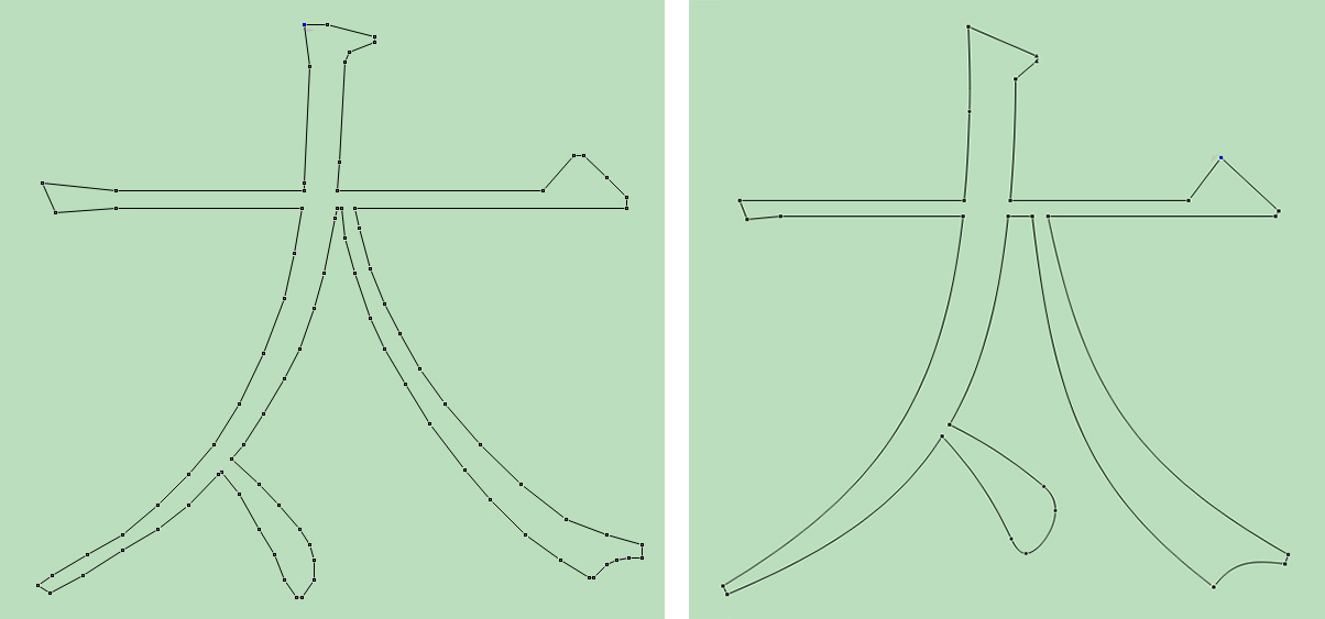 从左至右,矢量字,曲线字
