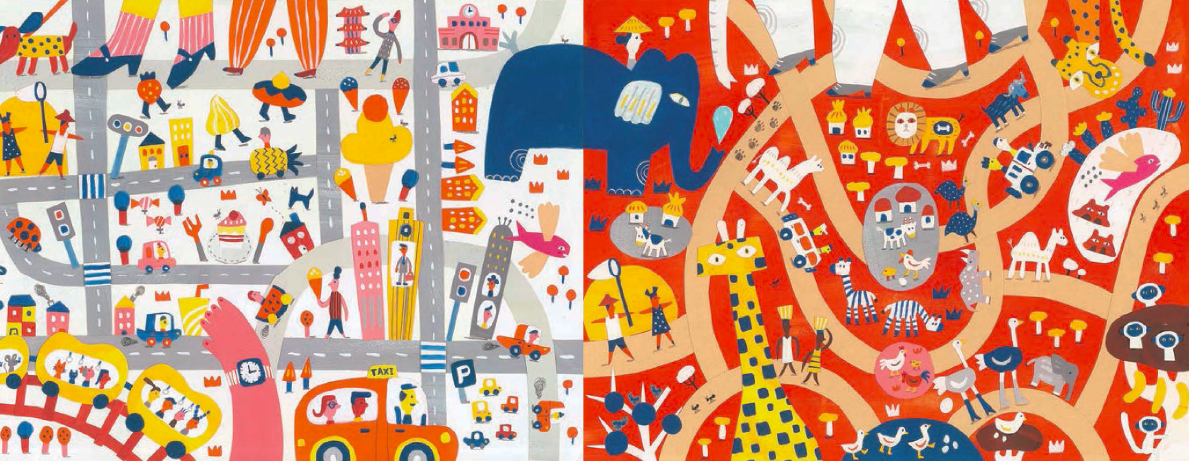 A:当插画被印刷成书时,会变成平面的,但每本书有很多页。翻动书页就可以构建世界,让人有一种翻到下页一探究竟的冲动,激发读者的兴趣。从技术角度讲,有模切、折叠、立体工艺等等。书中的文本也可以唤醒读者的触觉与视觉。