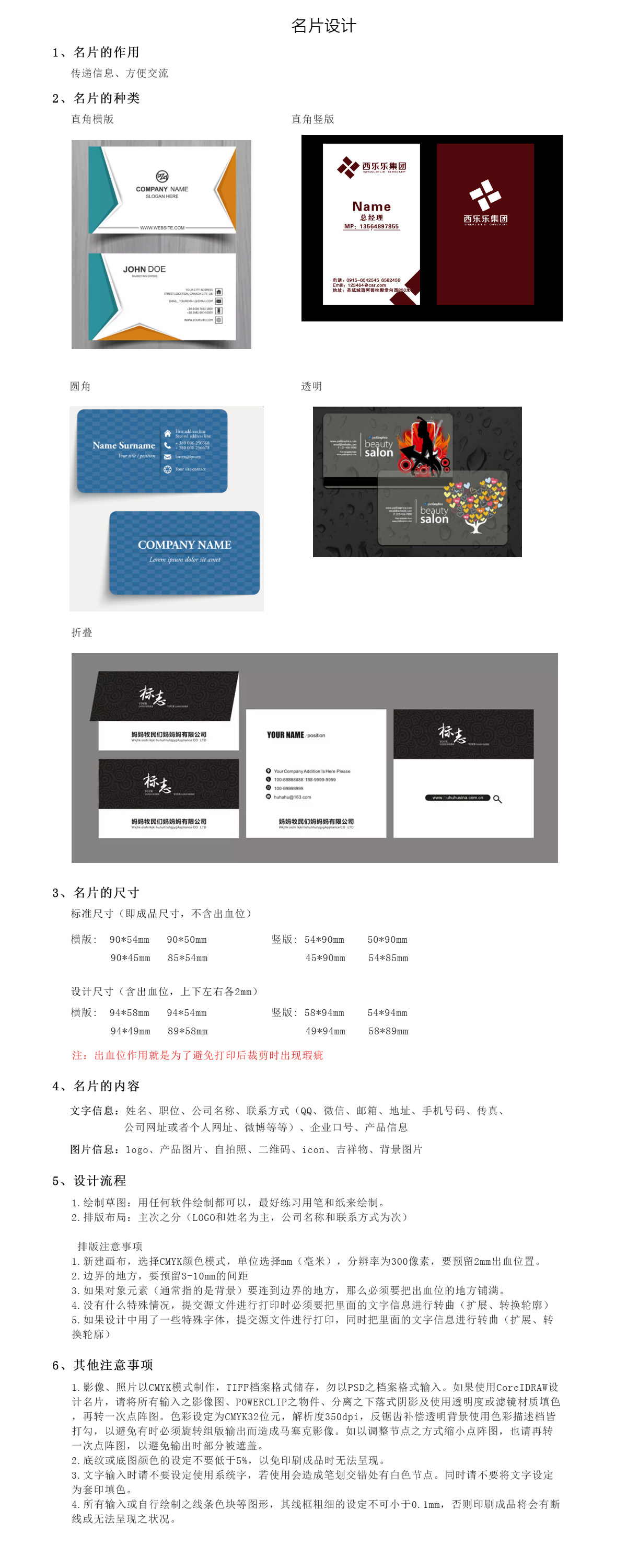 名片设计规范