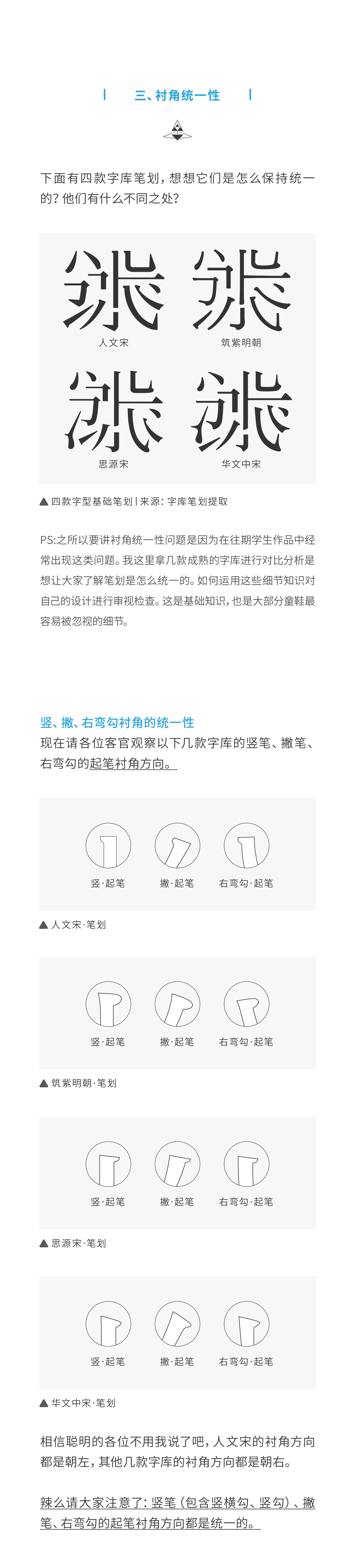 宋体各笔划之间是存在非常密切联系的,本教程意在于教大家如何观察笔画的特征和关联性,此法也可用于其他字型。