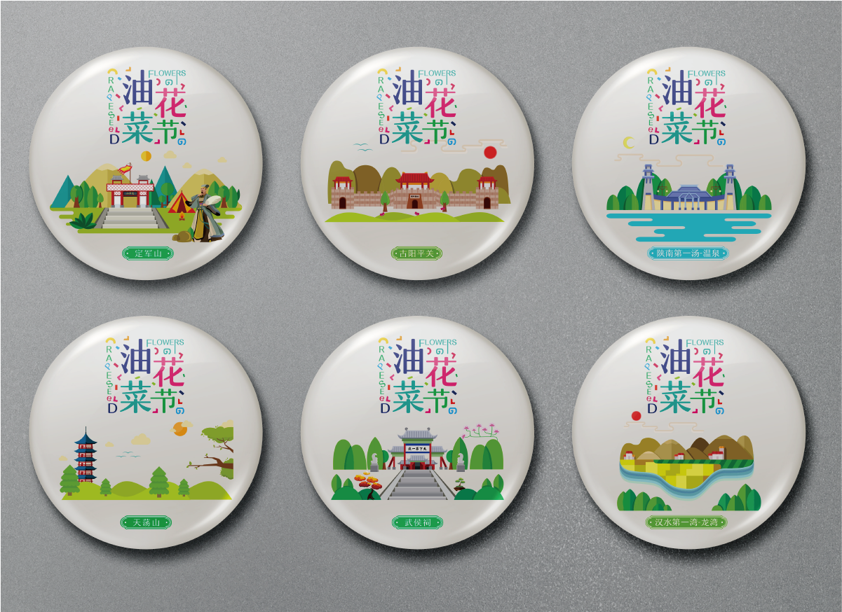 3、视觉表现形式上我们大力创新、创高度,使文化、艺术、现代完美结合,从而我们创作了几幅勉县特有的景点插画,使之成为勉县的超级视觉符号,让文化性、艺术性的视觉新形象加深人们对勉县及油菜花节全新的认知。
