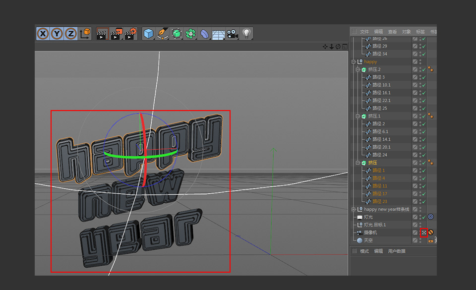 22. 选中编好组的字体组别,将其移动到摄像机范围内相对应的位置