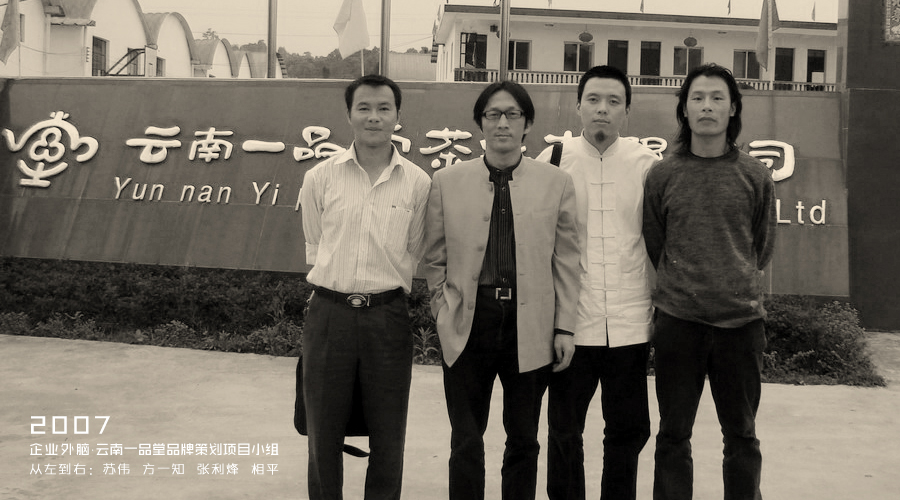 利烽自信、执着、个性张扬,是个极富感染力的人。正是被他的热情感染,我和他一起加入企业外脑工作室,共同参与了不少案子。有利烽在,做设计时如鱼得水,经常出彩。后来,利烽离开工作室专心搞茶画创作,我和他的关系从同事又复归朋友。这几年利烽成绩斐然,被媒体称为著名画家——画茶画、刻紫砂、玩瓷器,活跃在昆明、宜兴、景德镇等地,办画展,做活动,写文章,经常在媒体露上一面,画集和册子也时常在书店看到。年前利烽深夜来电,说又要出集子了,我想以前有机会参与设计,现在隔得远了就为他写点啥吧。写点啥呢?说实话,越是距离近的人越不好下笔,镜头近了模糊,不容易把握角度。我看到更多的是那个一无所有的张利烽,我更了解的是那个没有任何光环的非著名画家,但是我想,不管现在和以后的利烽如何,那段最青楚的时光,总该留在漫漫人生的记忆里吧。