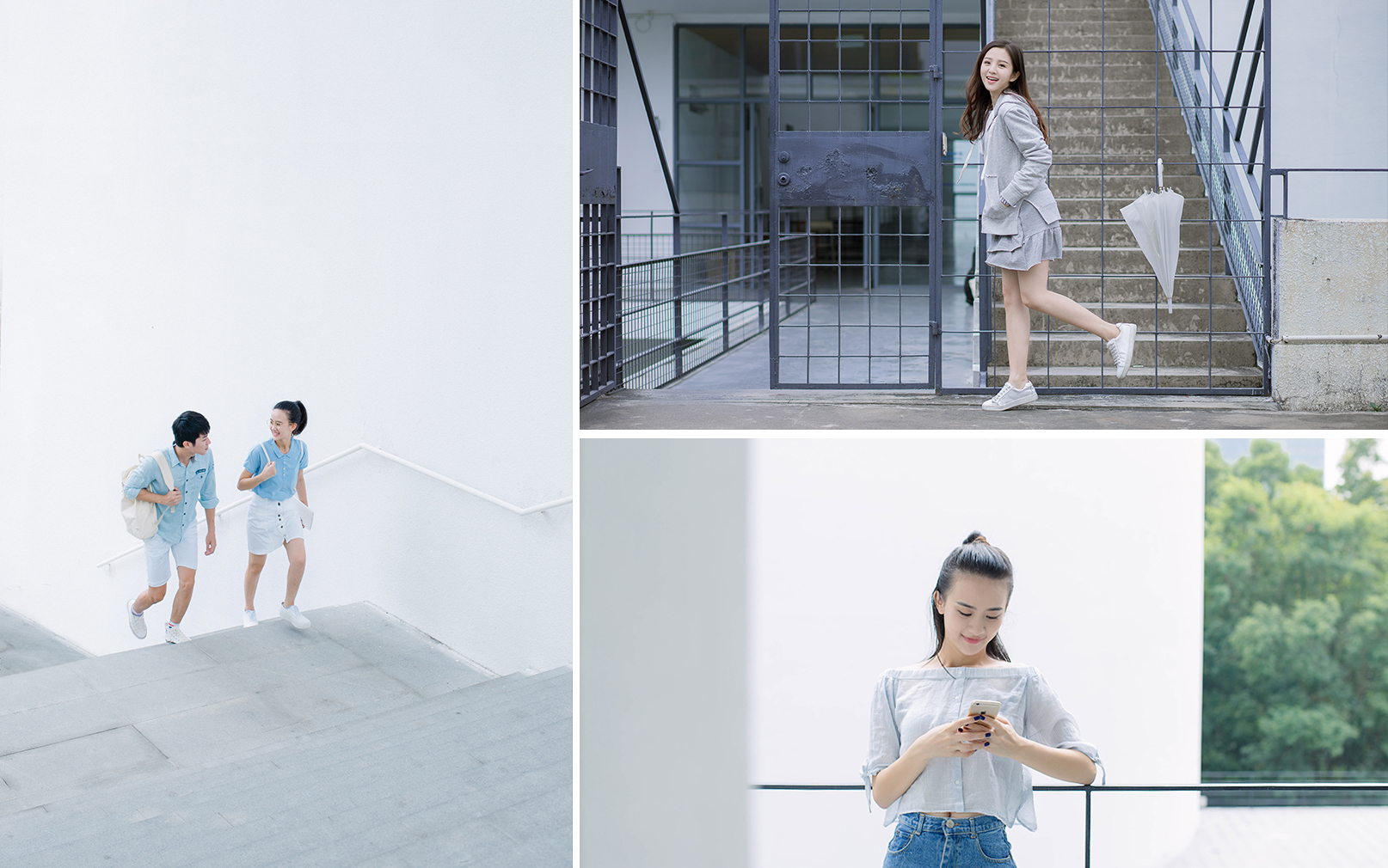 南校区的设计教学楼延续了建筑系馆的设计风格,运用体块穿插,光与建筑相互映衬,凸显建筑的复杂多变。简洁细致的背景,适合拍出引人注目的高级感大片。