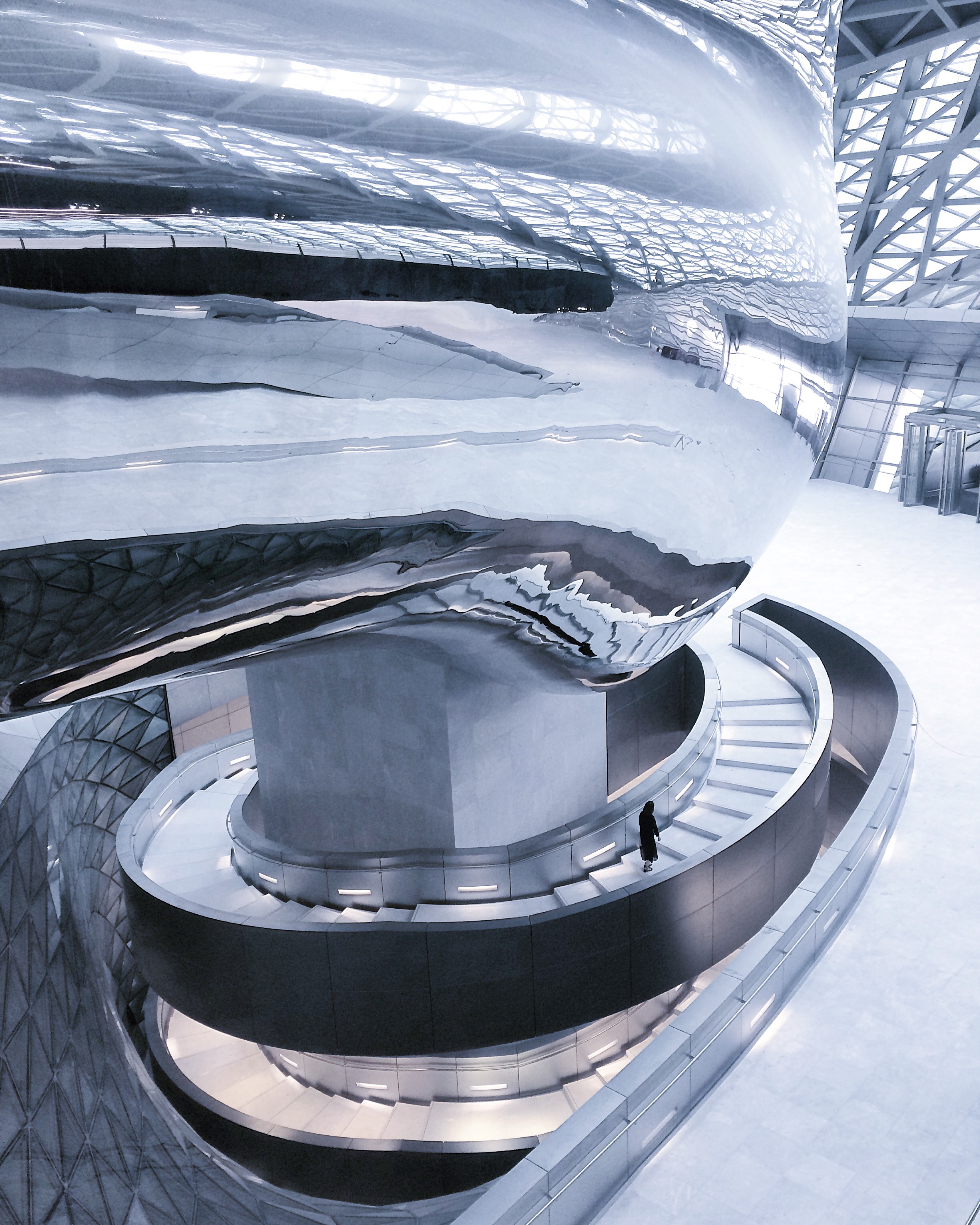 这是由当代艺术馆与城市规划展览馆两部分组成的“概念建筑”,犹如一块晶莹剔透的城市巨石,拥有独特而富有美感的造型和丰富的内部展示空间。空间构筑变化多端,在采用大量的倾斜、扭曲、旋转等异型钢结构布置的同时,贯穿运用了生态化的节能技术,形成了一个存在环境差别却衔接通畅的有机整体。这样一个巨大且充满震撼力的艺术作品,当之无愧地成为深圳新的文化地标。