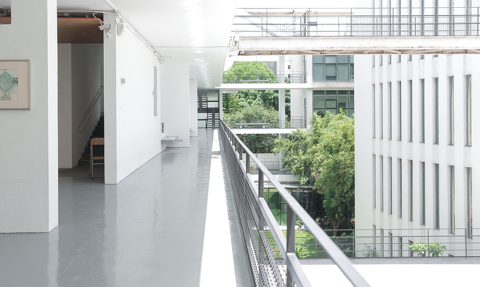 从深大北门进入校园,右侧就是建筑系的大楼。这座曾获得“中国建筑艺术奖”的系馆,具有朴实、纯粹的设计风格,寓意在于给人一种宁静的氛围,让学生进入建筑后能有一个平静平和的心态来学习生活。系馆共三层,运用了敞廊、桥、平台相互连接贯通,通透的空间和白净的清水墙促成了天然的反光板,即使在阴雨天也可以拍出透亮的照片。