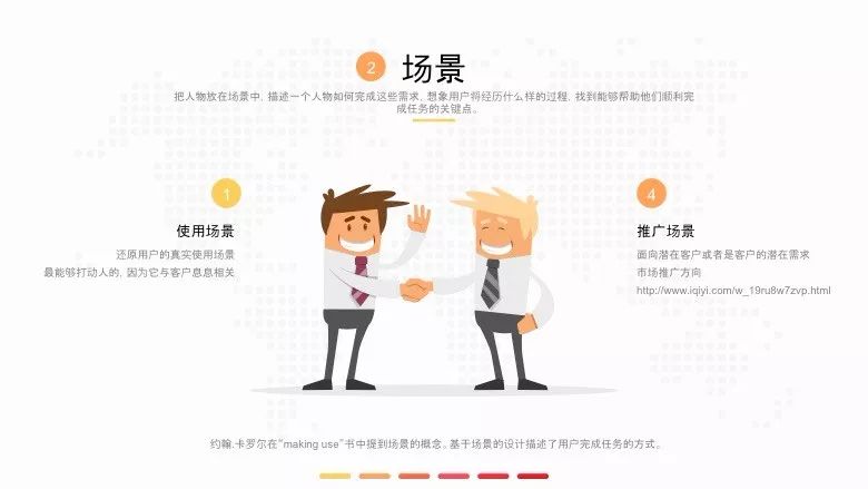 使用场景---还原用户的真实使用场景,最能够打动人的,因为它与客户息息相关。