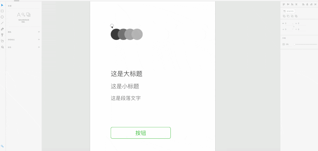 椭圆工具:创建页面圆形元素,快捷键e;属性同上,按住shift 画出正圆;按住shift+alt从中心画正圆(类似ps)。