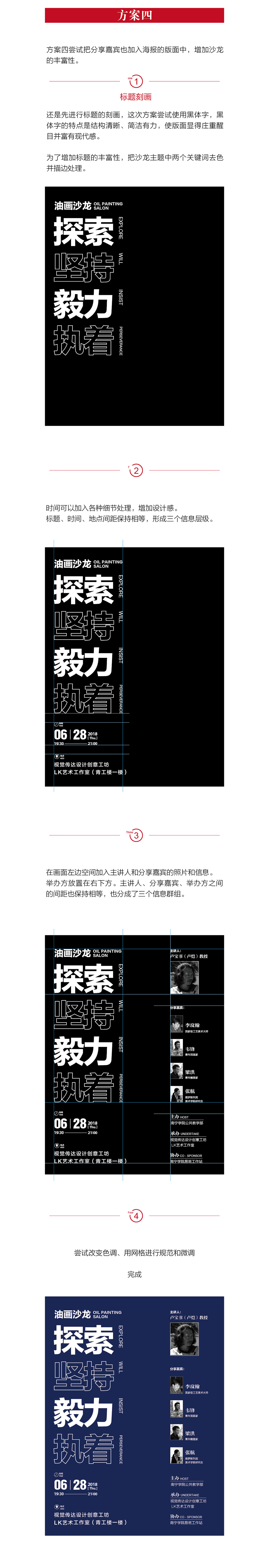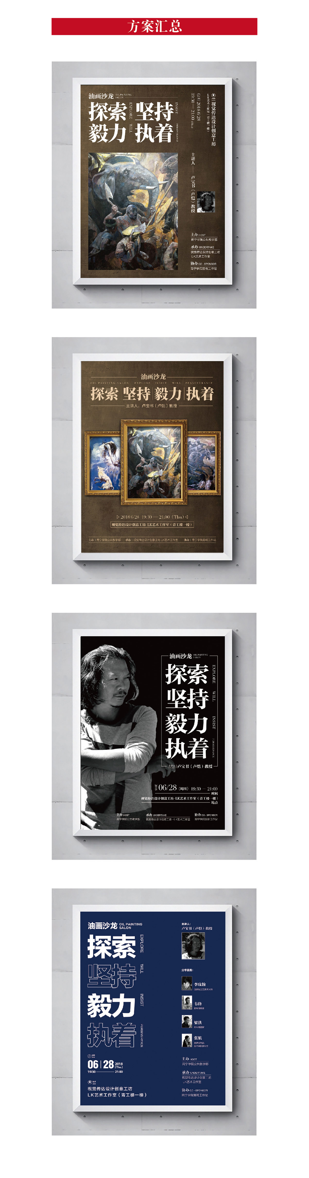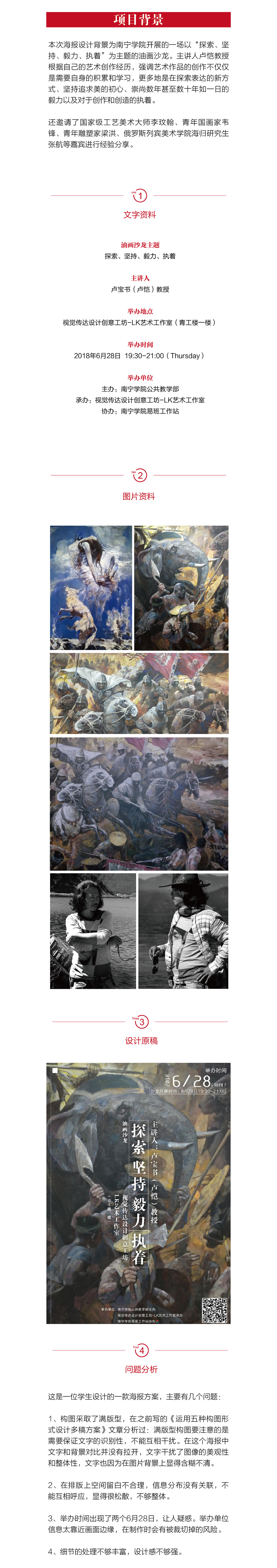 本期修改一则油画沙龙海报,提供四个方案供大家参考。