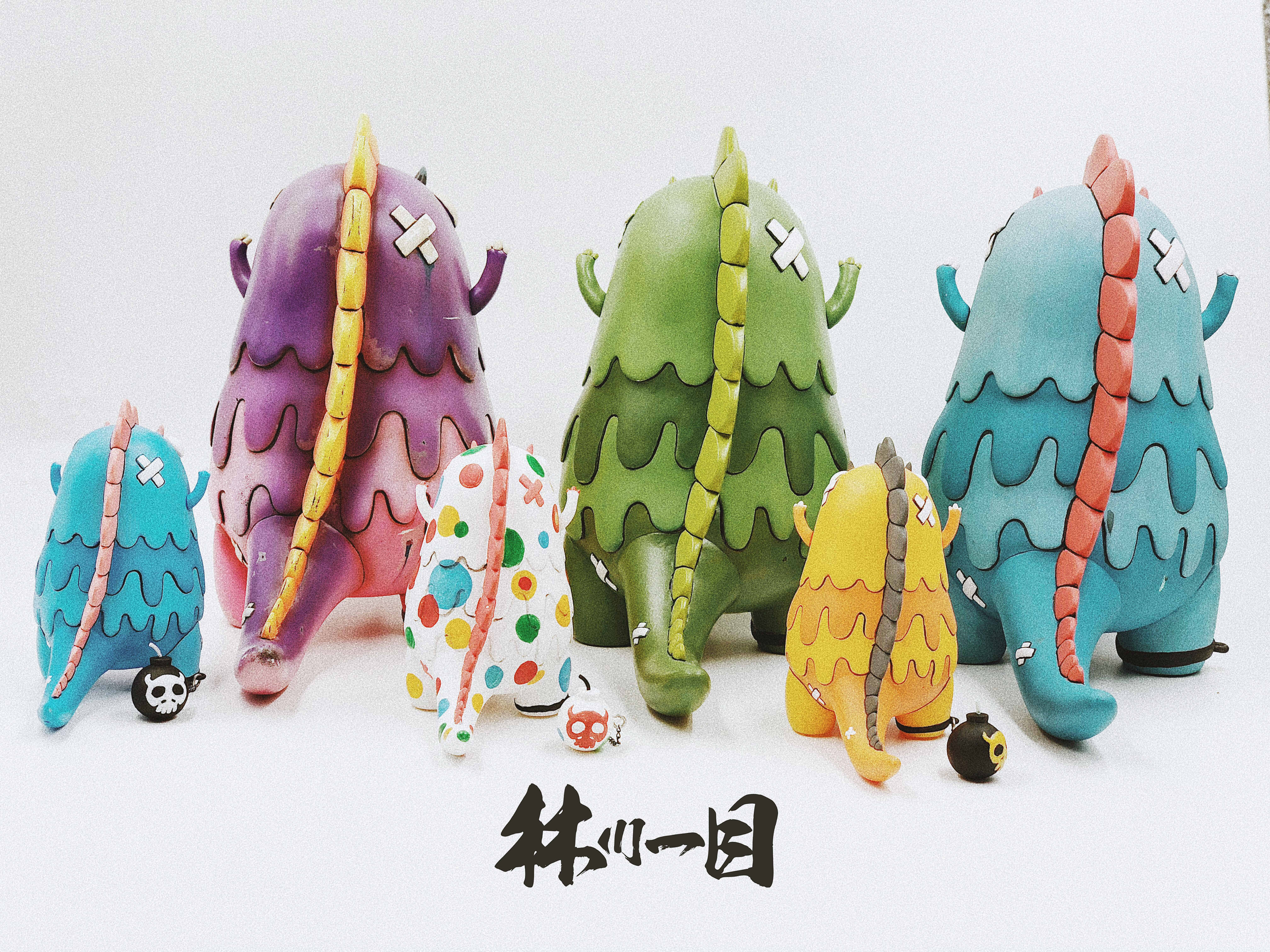 我们的作品包含12寸人偶炸弹人和搪胶类怪兽dada等,
