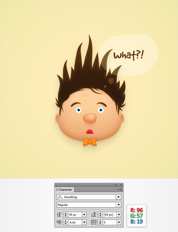 最后,选择文字工具(T),点击你的画板,简单地添加文本。 您可以使用GoodDog字体的大小设置为45px,并在R = 96 G = 57 B = 19的颜色。