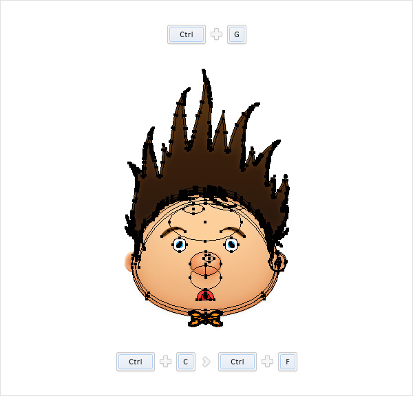 现在,你需要清理前面的“ 脸 ”组。 首先,简单地删除该补鼻子,嘴巴,眼睛和眉毛的形状和路径。