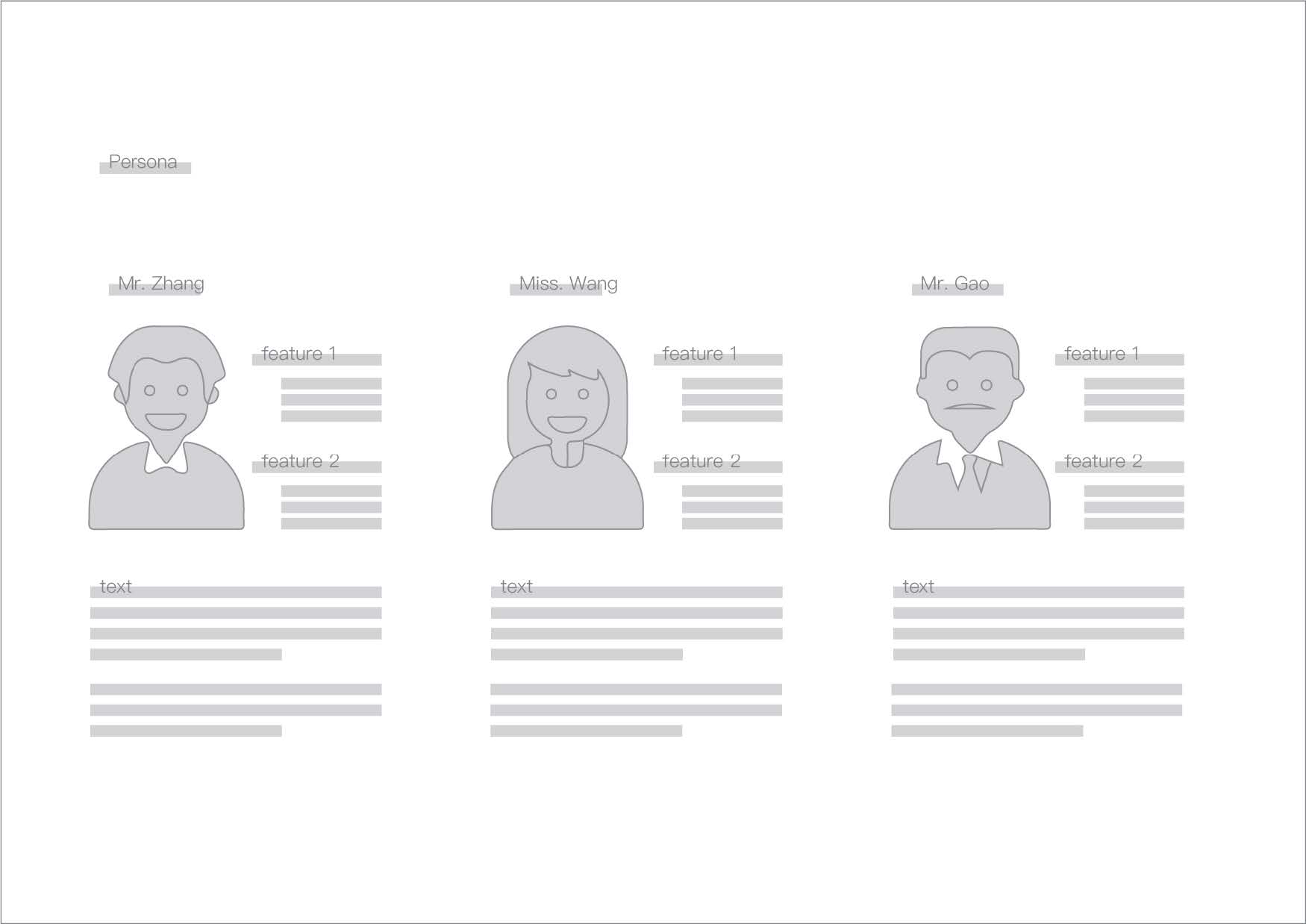 当然,persona board 的另外一种呈现也可以是以几个典型用户的形式来体现,如上图所示。但是需要注意的是,这几个典型用户所创造出来的“用户空间”以及要能够反映你的目标用户。但是,并不是所有的项目都起于persona, 只有那些先定位了一些人再逐渐剖析发现问题的设计流程才会以persona board 作为设计的起点。