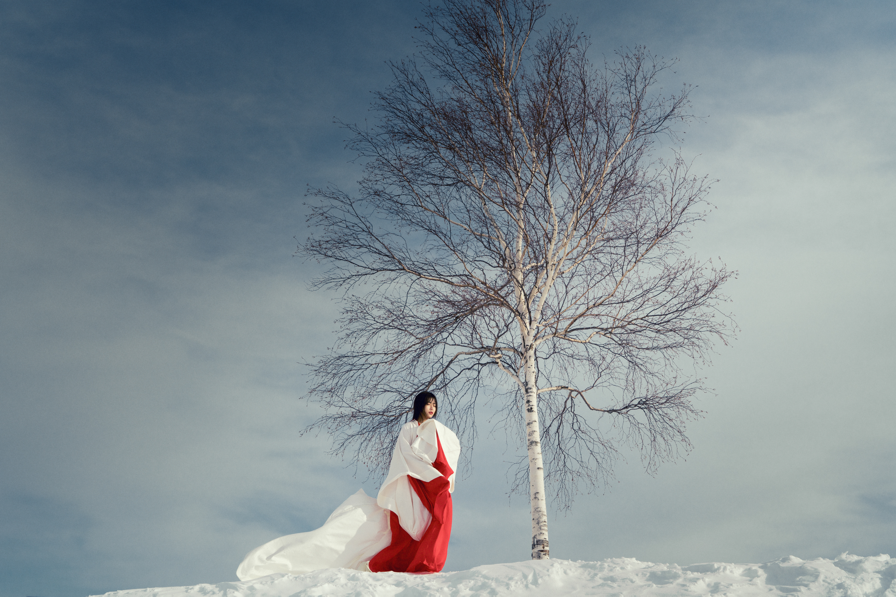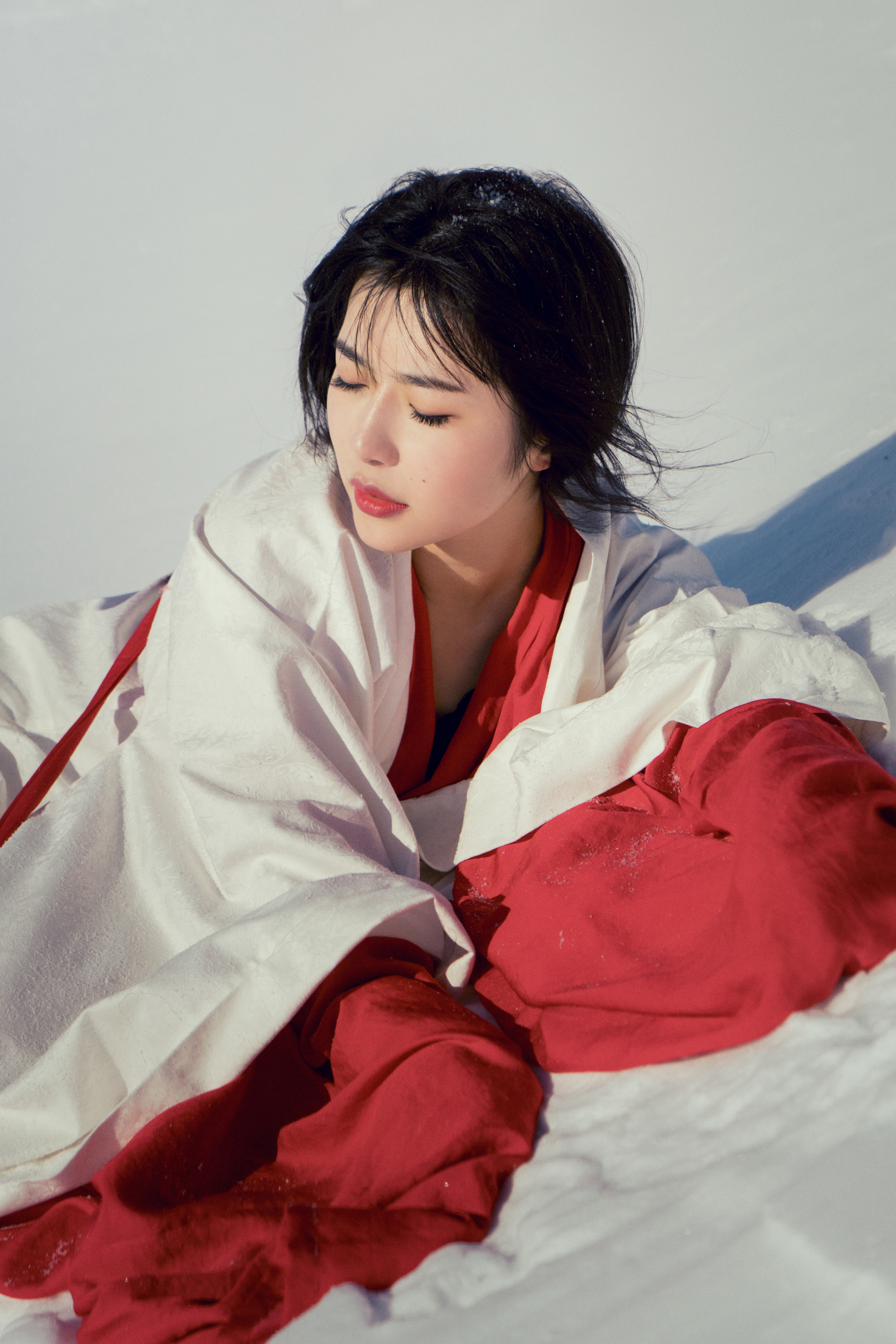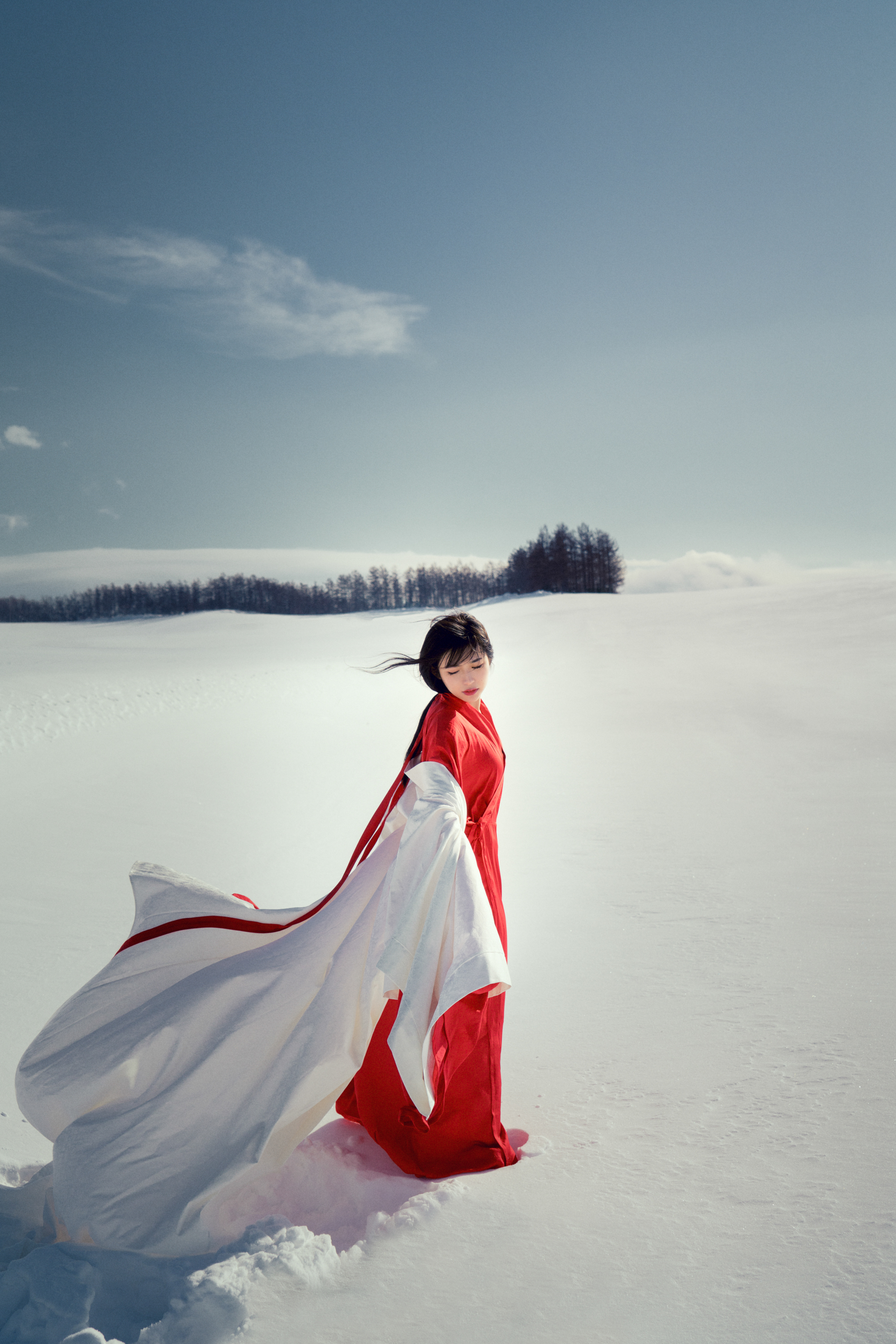 在这么干净的环境里,搭配上有反差感的色彩,随便躺在雪地里拍照都很好看,我这次的北海道行程,用来拍摄的服装主要搭配的红色系,例如: